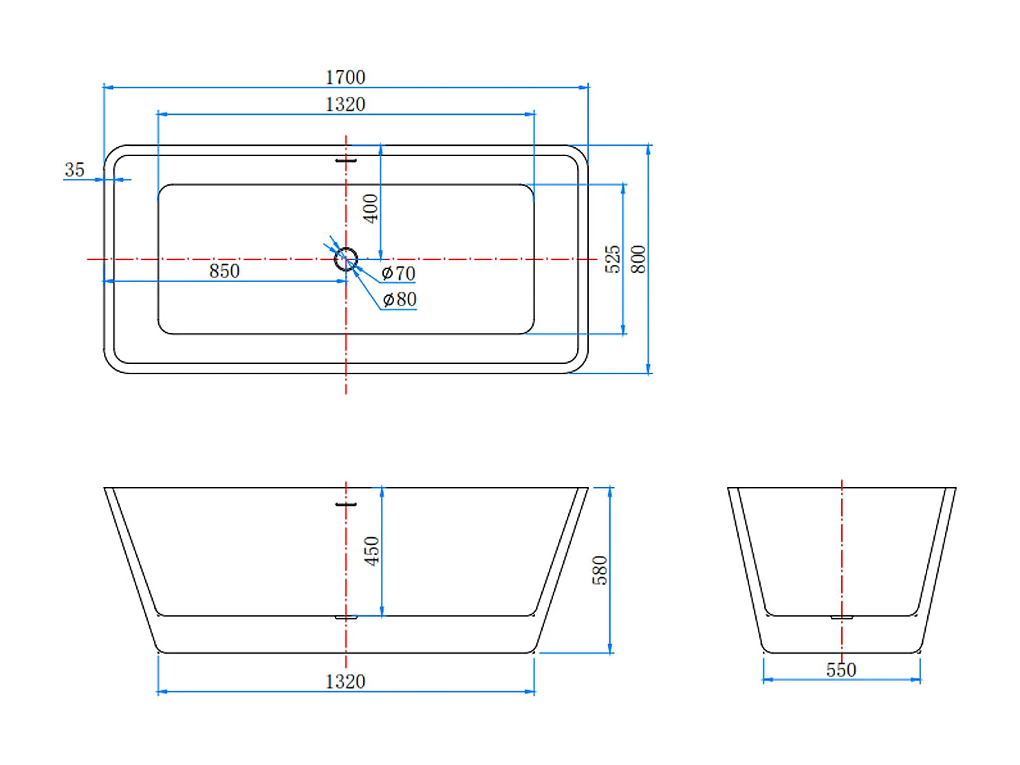 Vasca da Bagno a Isola Vasca da Bagno Freestanding in Acrilico da 170x80x58 cm, Colore Bianco, Forma Rettangolare