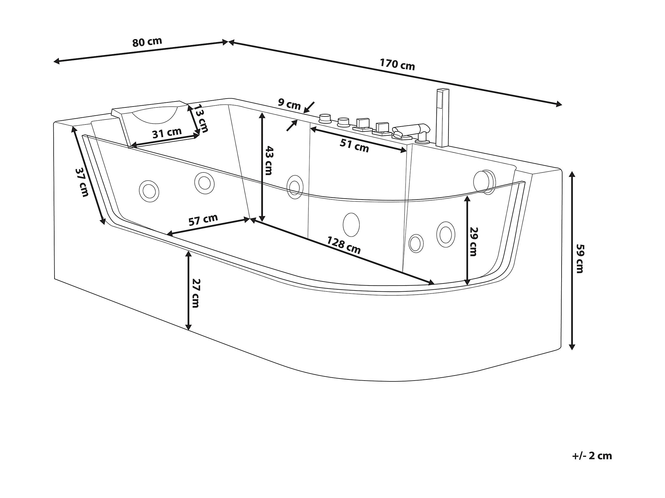 Vasca idromassaggio angolare con LED ACUARIO Lato destro 170 x 80 cm Bianco