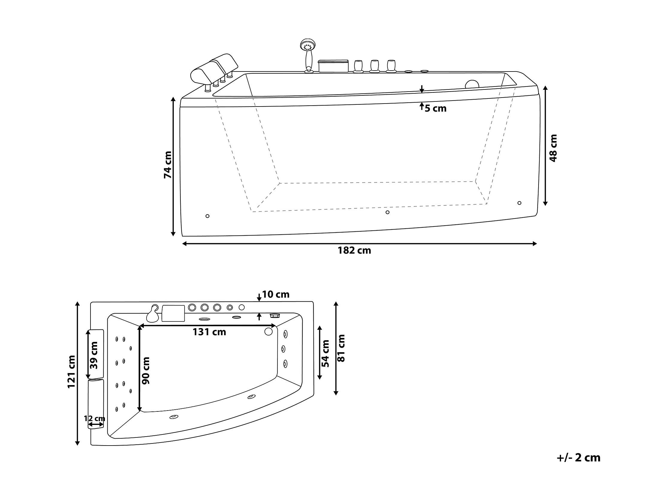 Vasca idromassaggio angolare SERRANA Lato destro Bianco