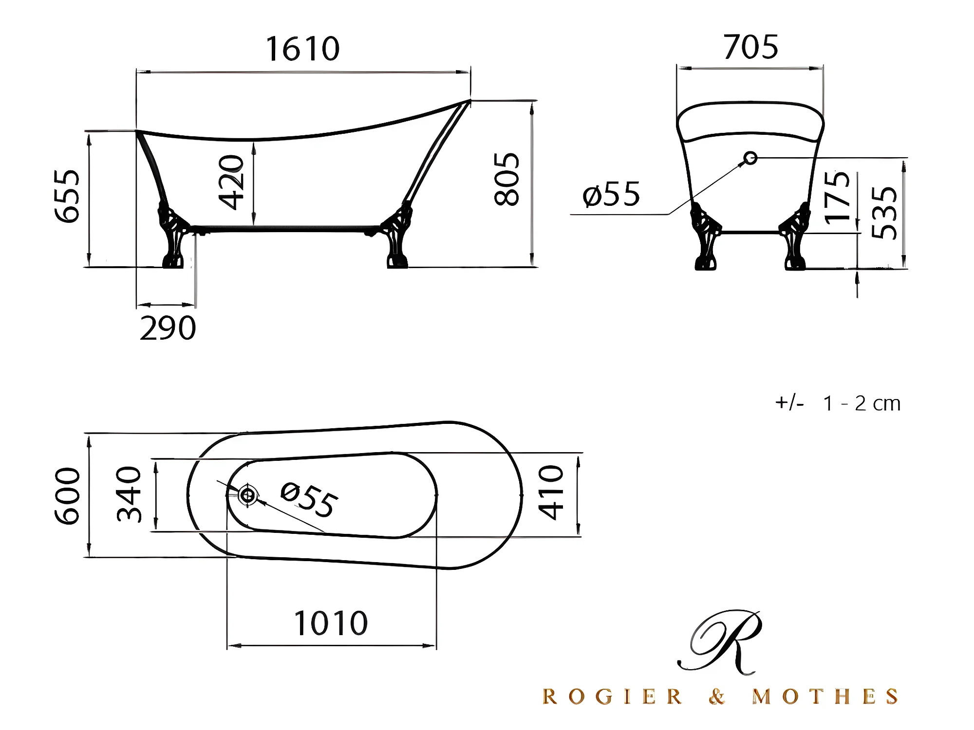Vasca da bagno freestanding stile classico con piedini BALMAIN Bianca 161 cm Piedini di leone Neri