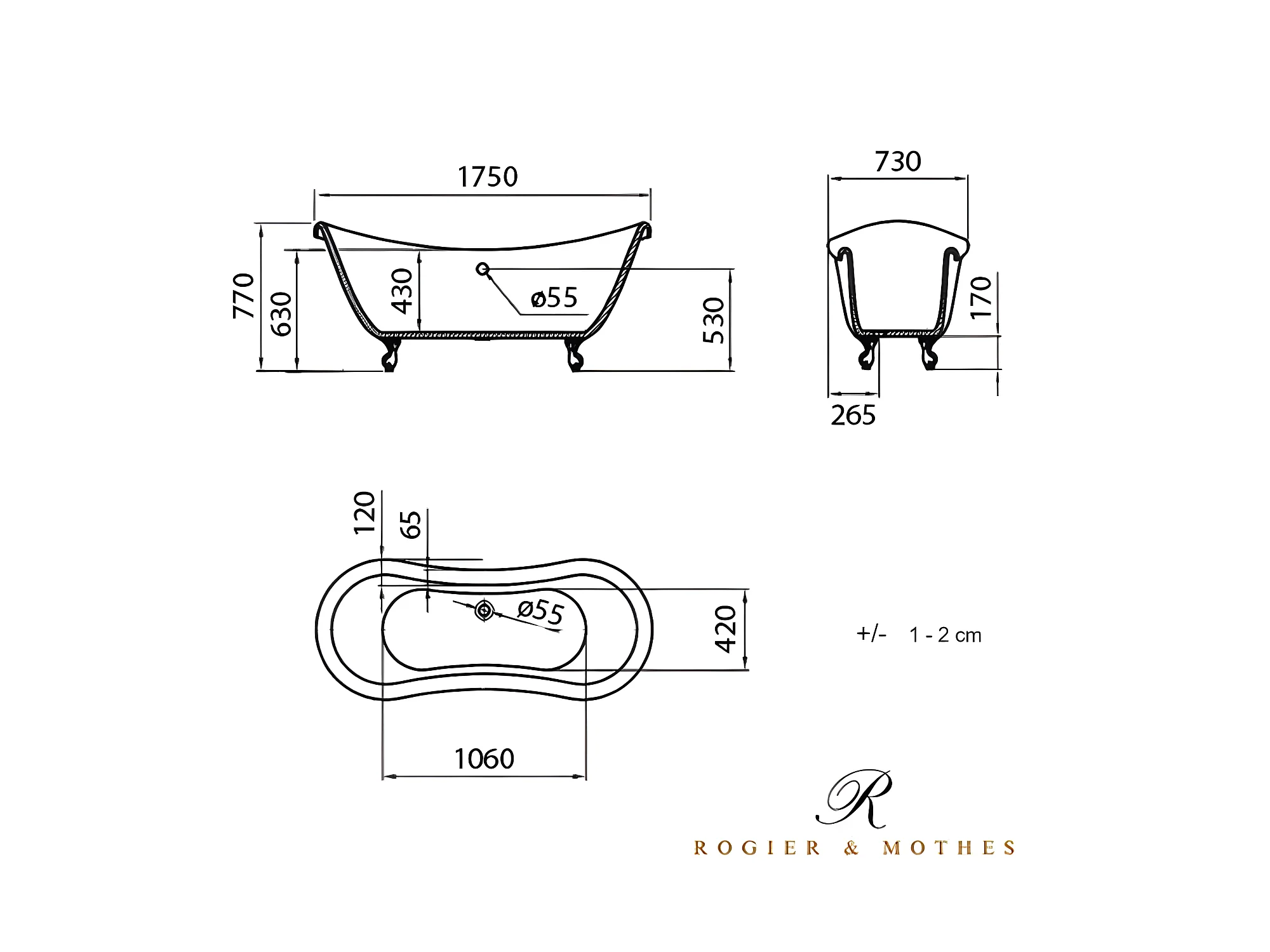 Vasca da bagno freestanding stile classico con piedini DARLINGTON nera 175 cm Piedini di aquila Rame