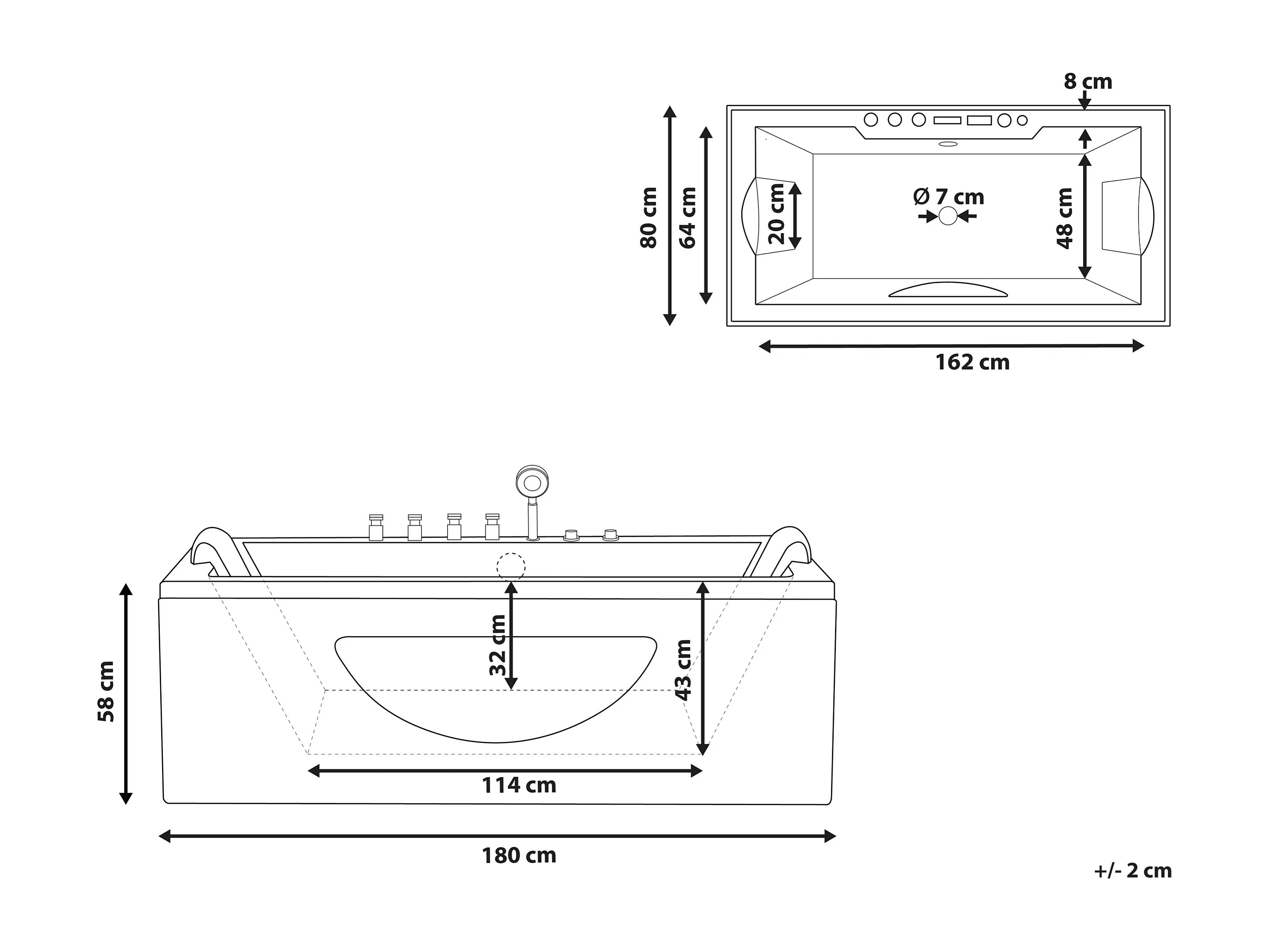 Vasca idromassaggio angolare con LED HAWES 180 x 80 cm Bianco