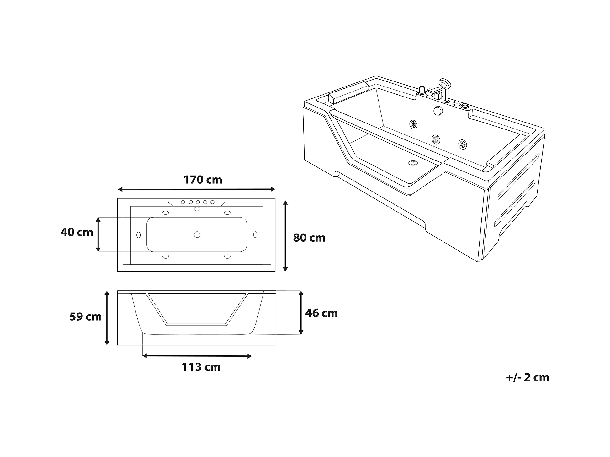 Vasca idromassaggio angolare con LED GRENADA 170 x 80 cm Bianco