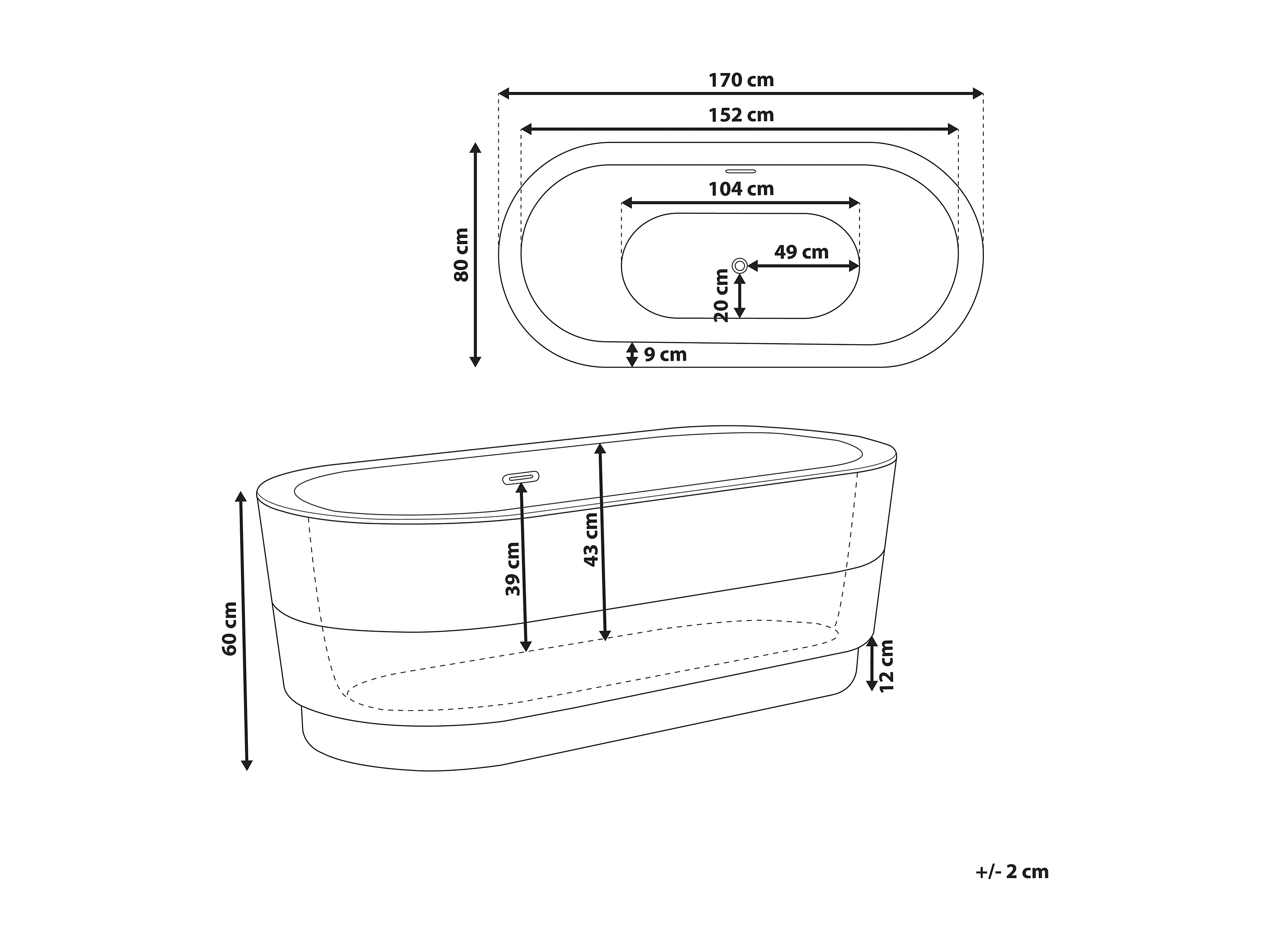 Vasca da bagno freestanding EMPRESA 170 x 80 cm Nero