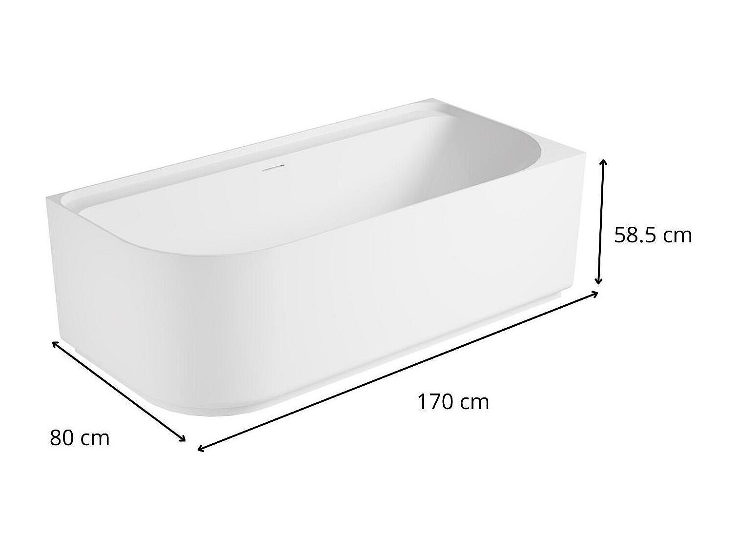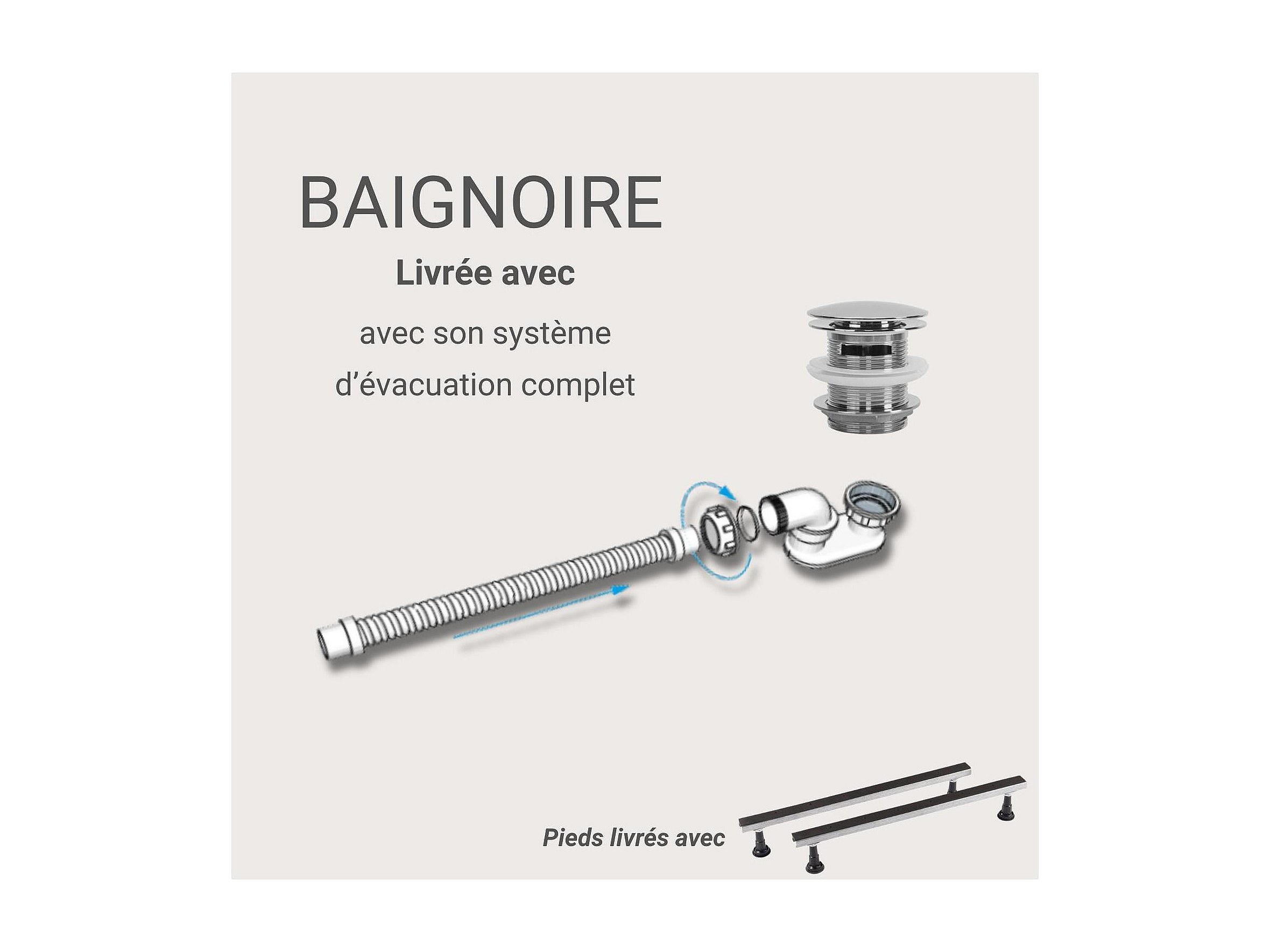 Baignoire semi-îlot blanche 170cm en acrylique Lucite® - Angle droit - Livrée complète