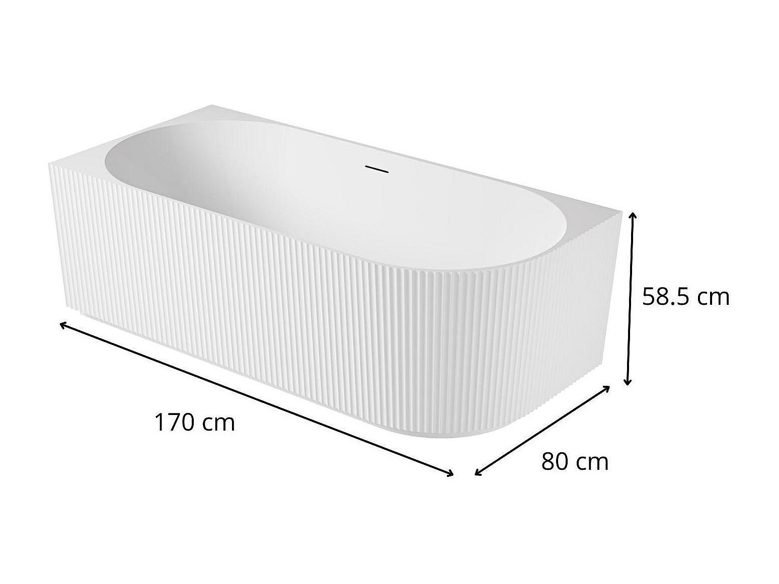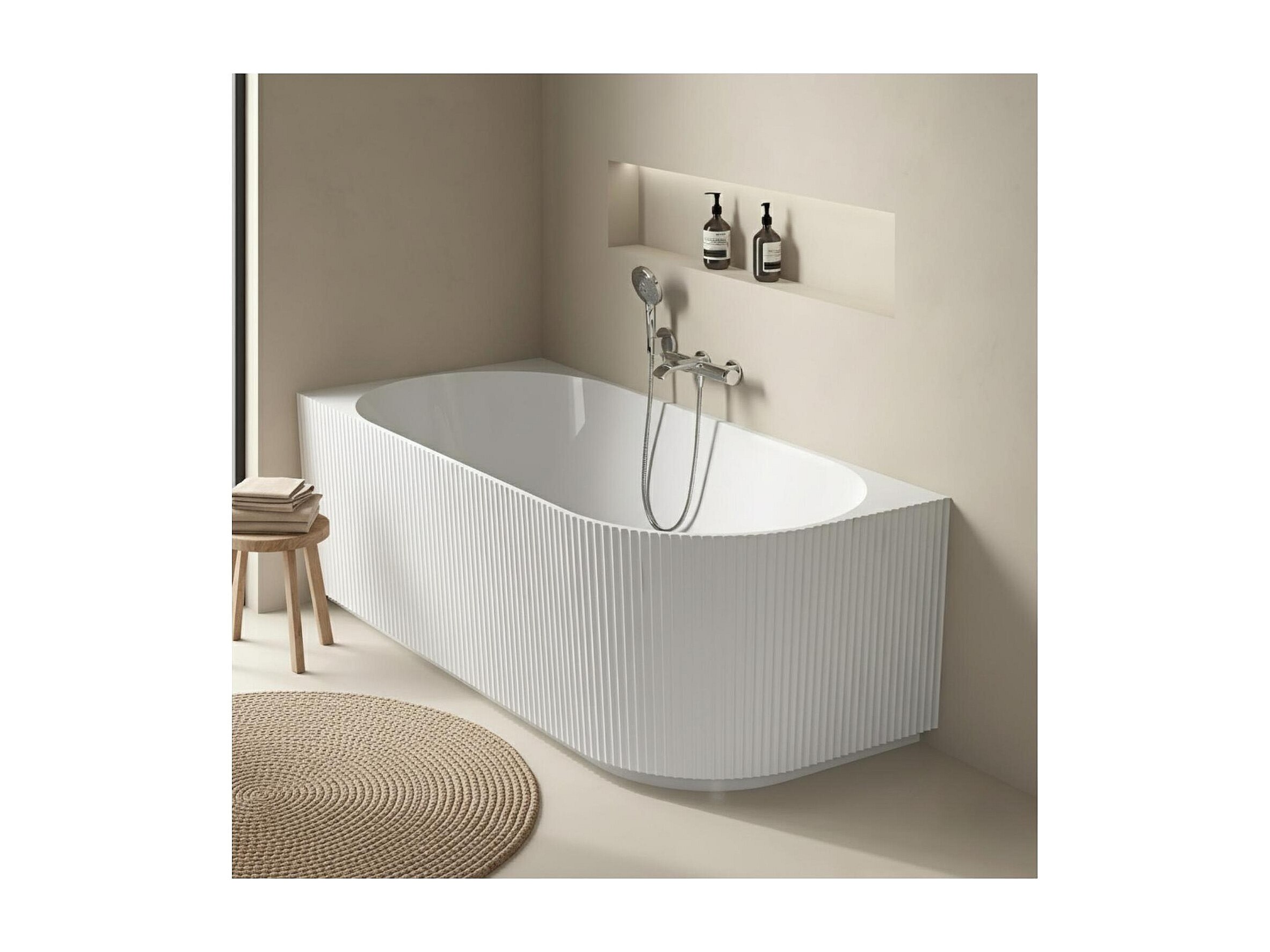 Baignoire semi-îlot blanche 170cm striée en acrylique Lucite® - Angle gauche - Livrée complète