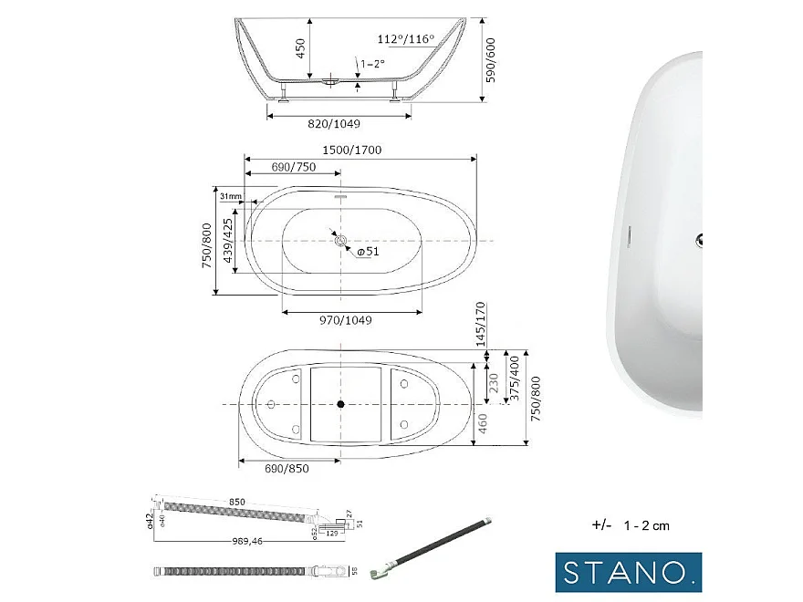 Vasca freestanding ovale PHOENIX bianca 170 cm