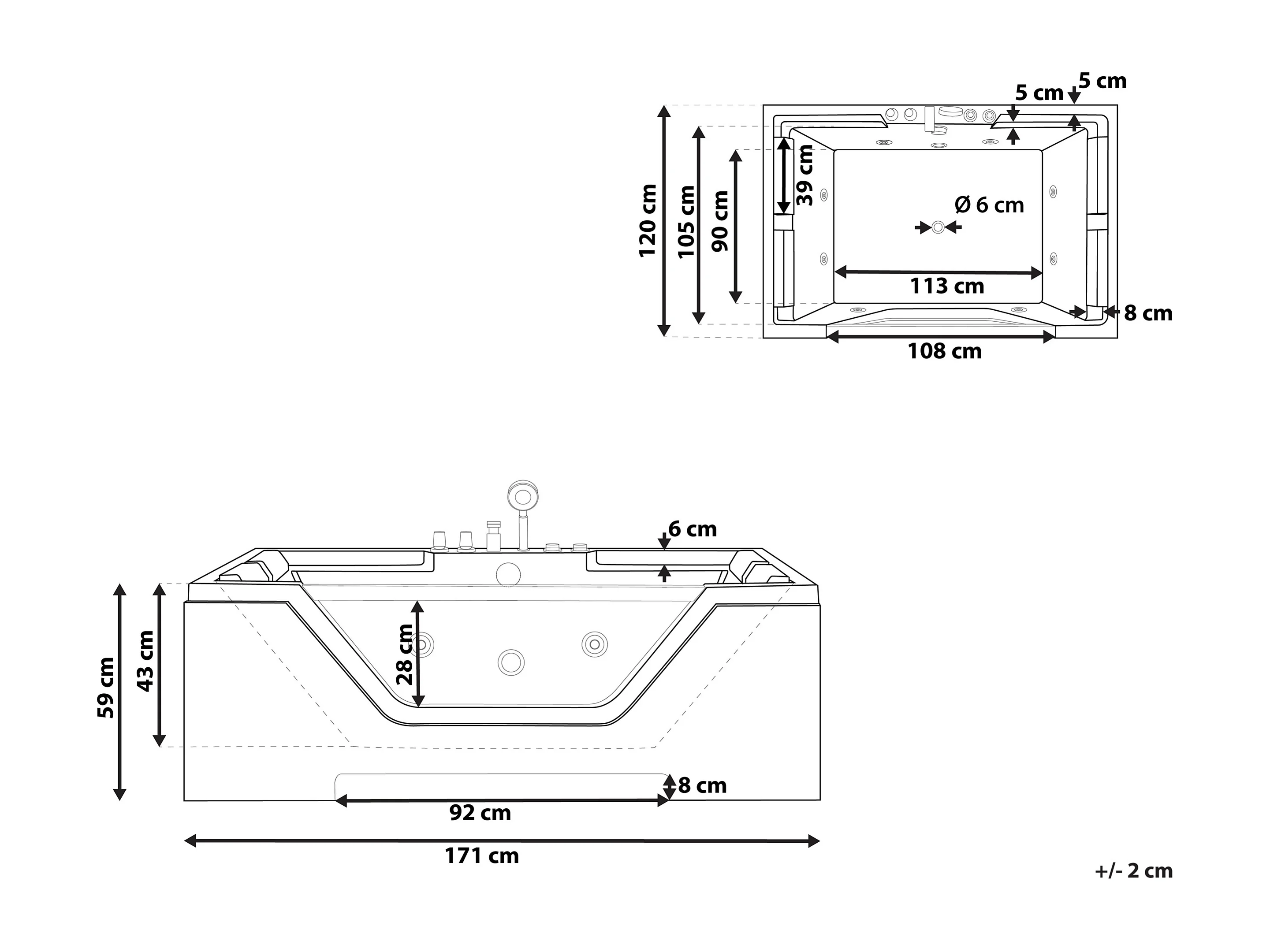 Vasca idromassaggio angolare HUARAZ 170 x 120 cm Bianco