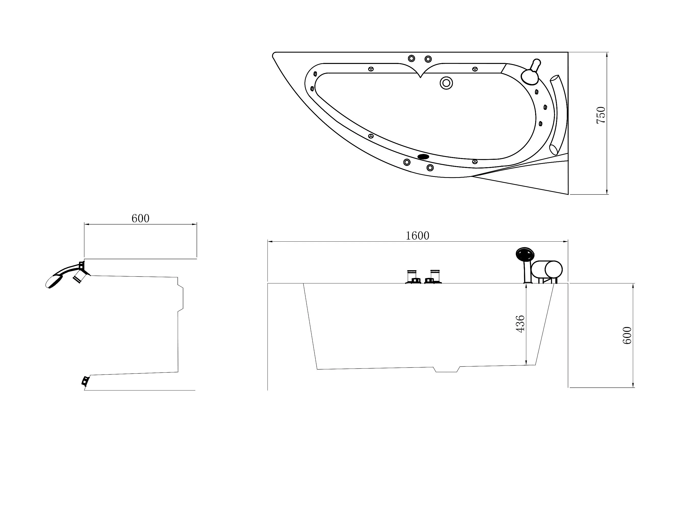 • Vasca da bagno asimmetrica: risparmio di spazio