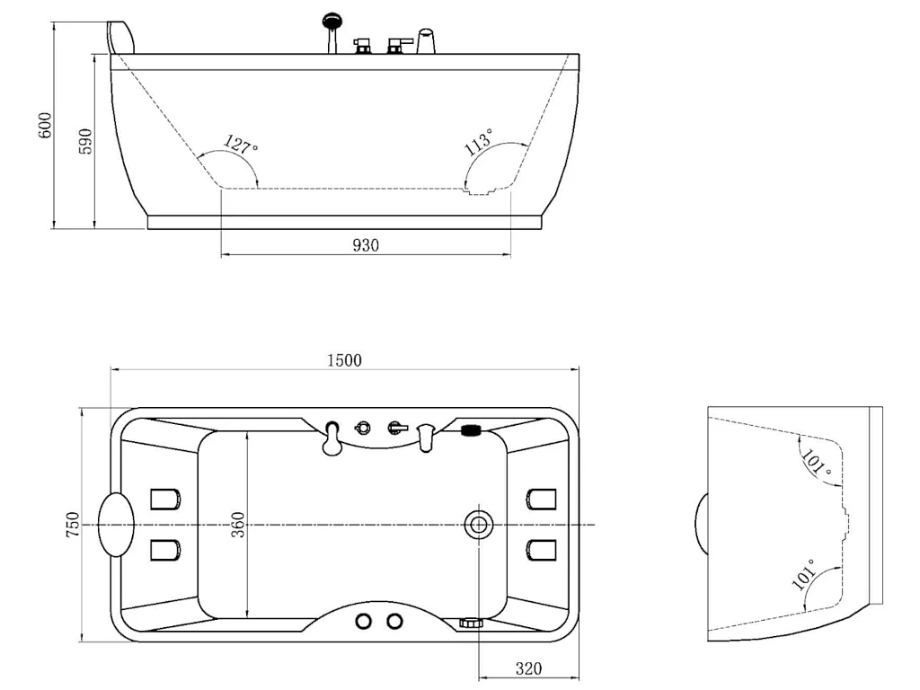 Vasca per balneoterapia bianca - 1 posto - 140L - 75x150xH59 cm - Angolo a destra - GAVINO