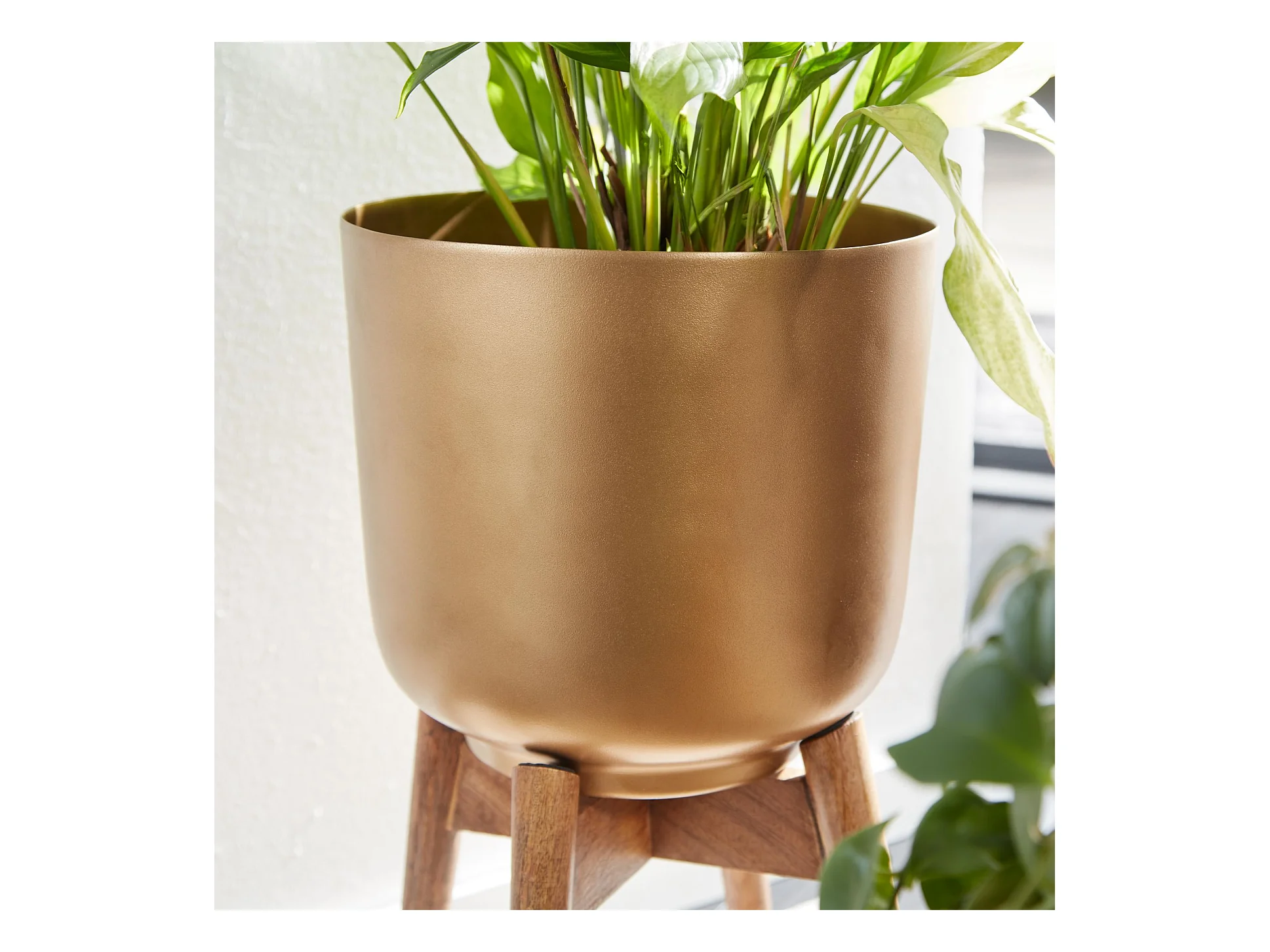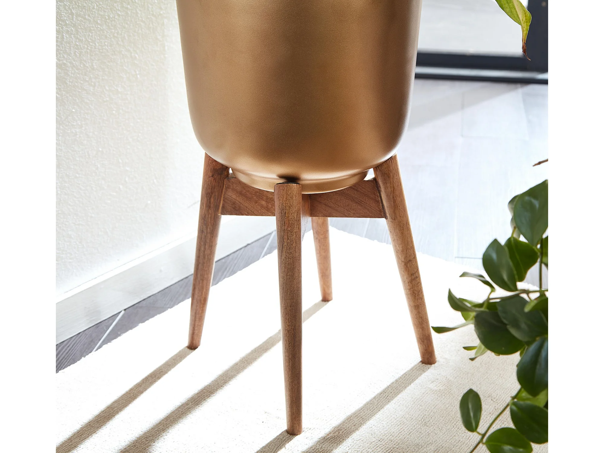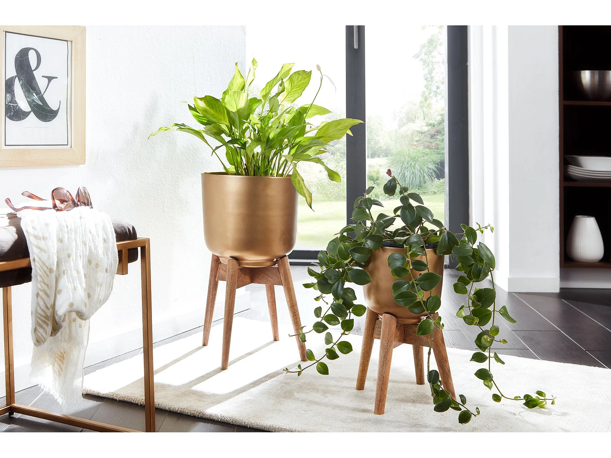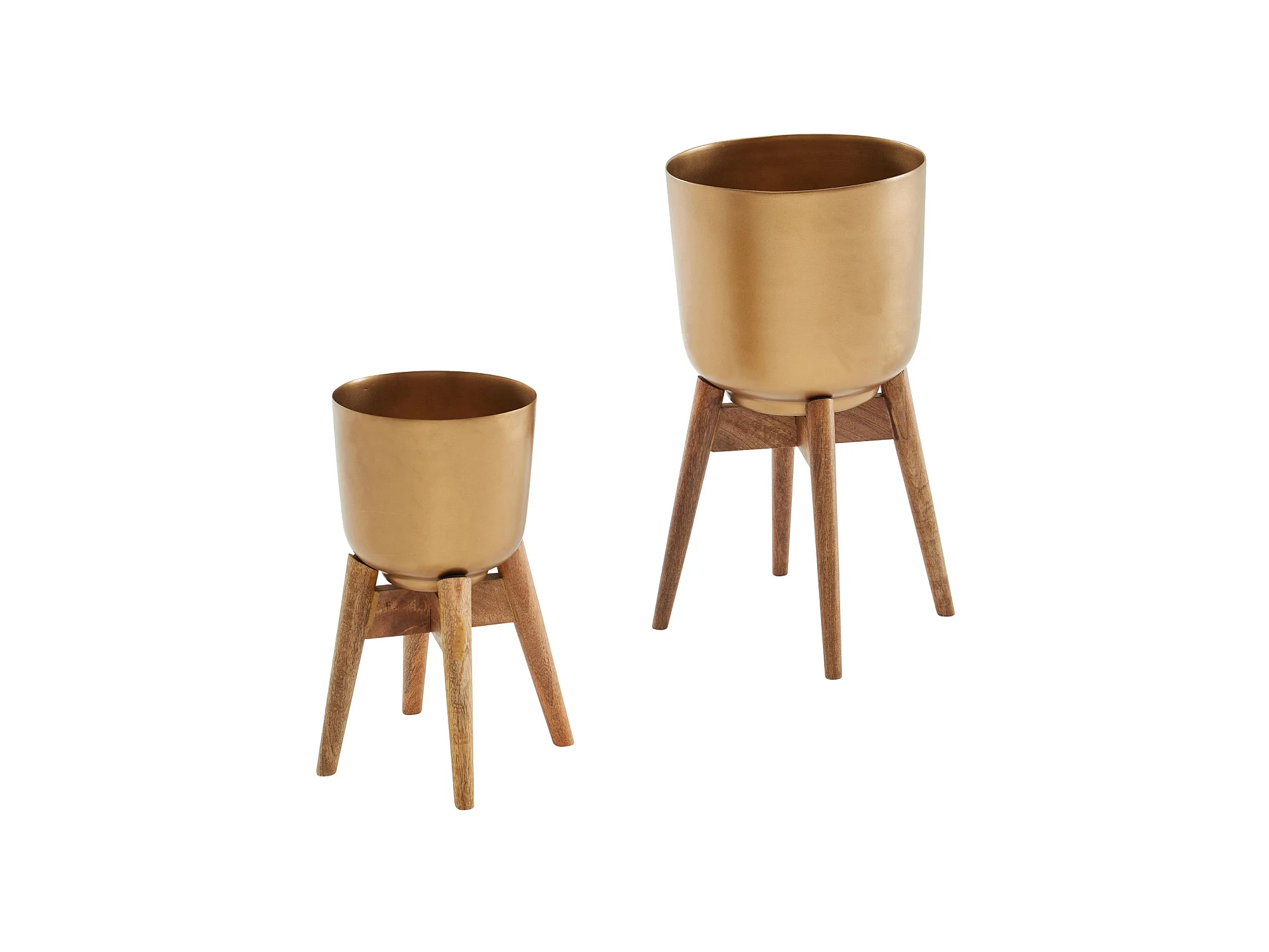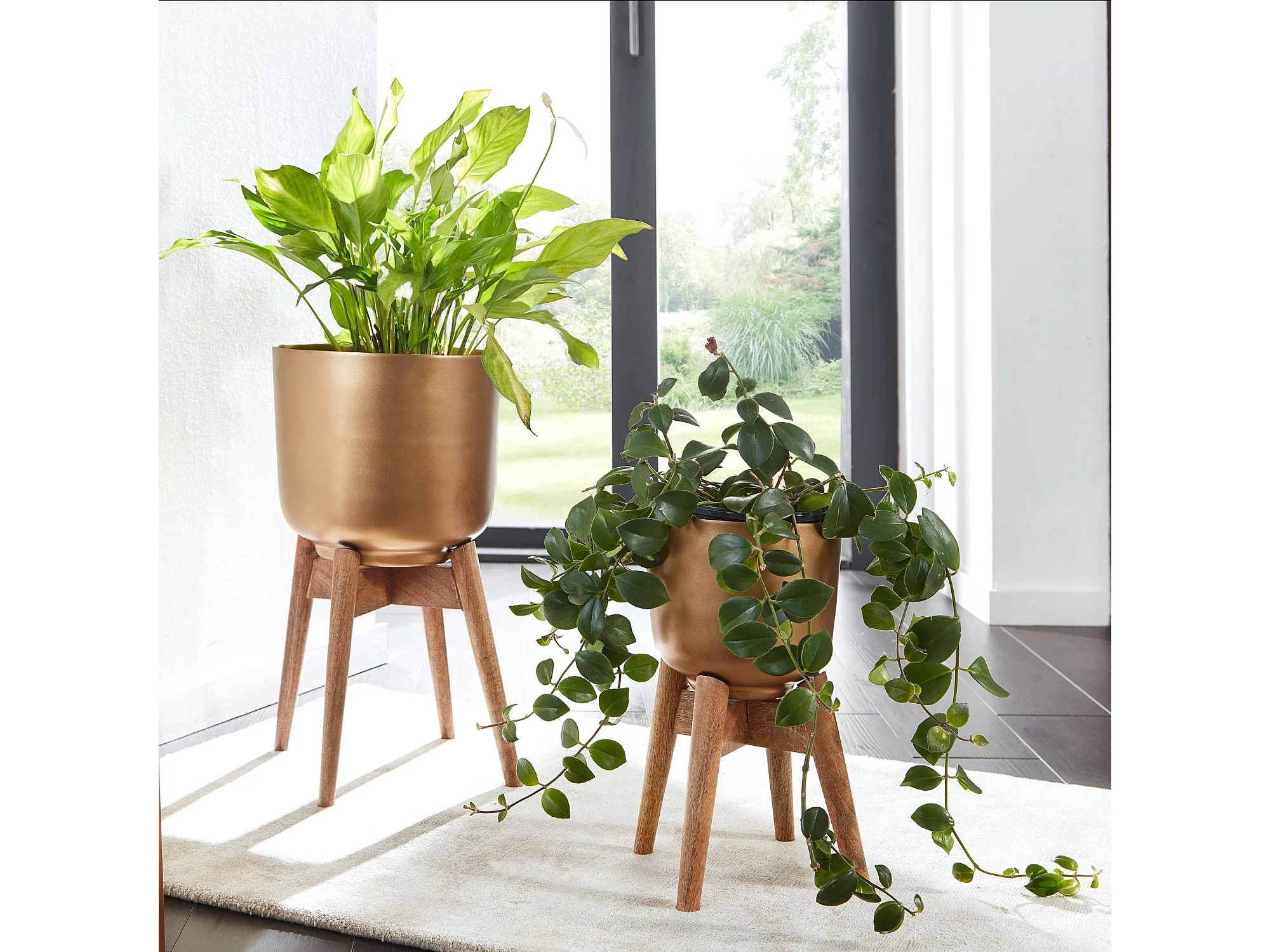 Vaso di Fiori Set di 2 Fioriere in Metallo Legno Massello Oro Fioriera