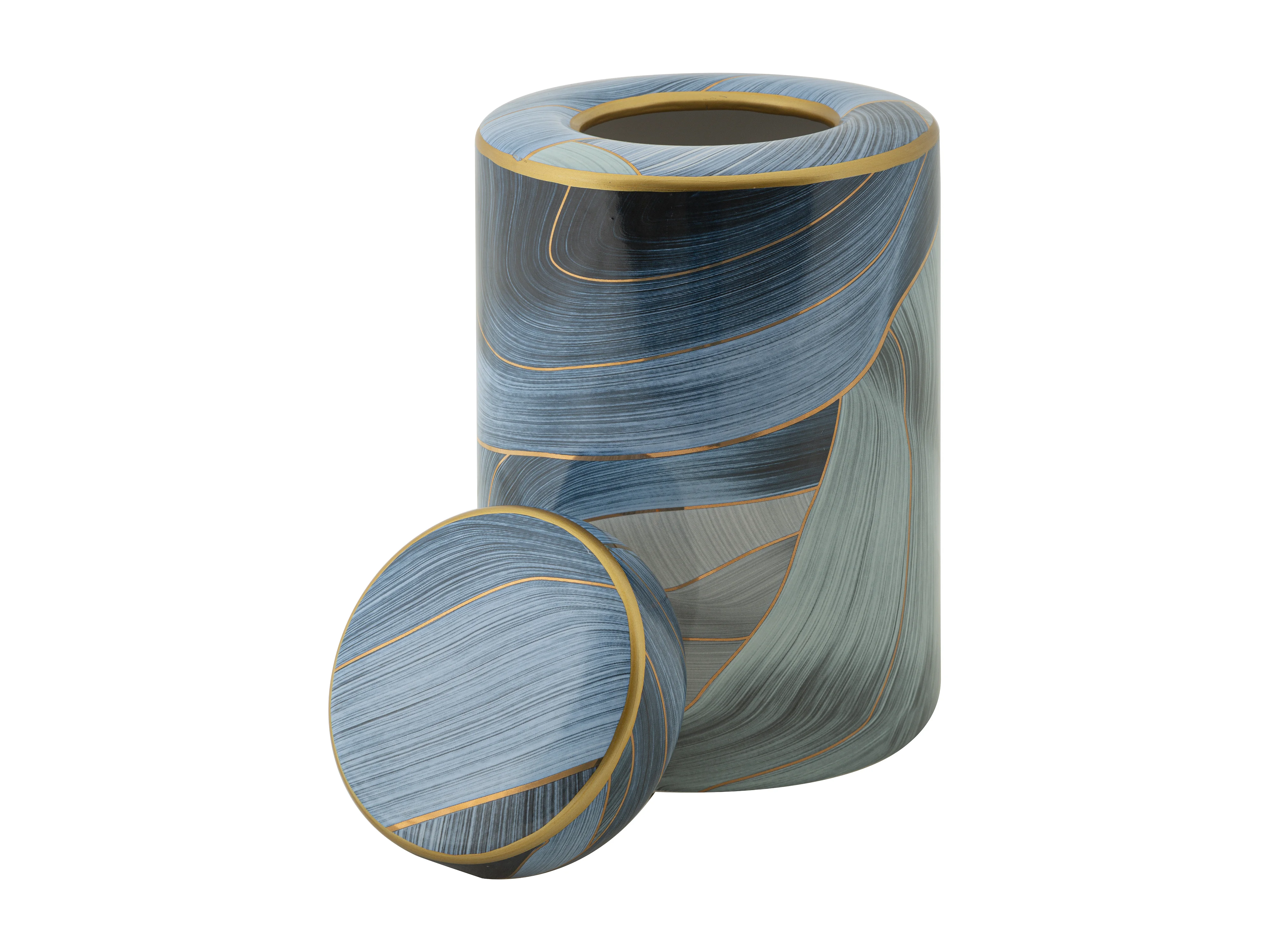 Vaso in ceramica blu con coperchio Ø cm 15x24