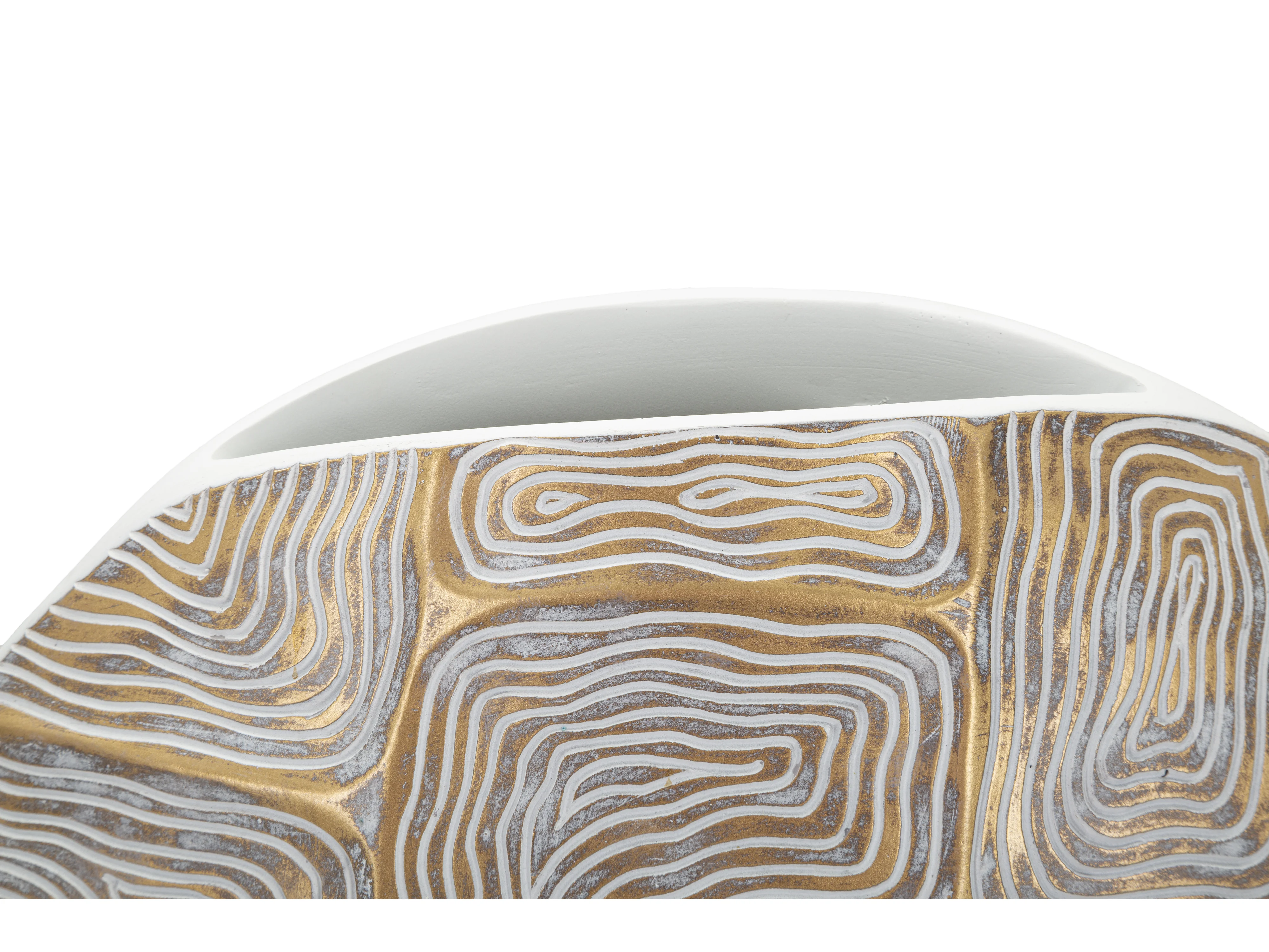 Vaso in resina dorato con linee astratte cm 36x11x34,5