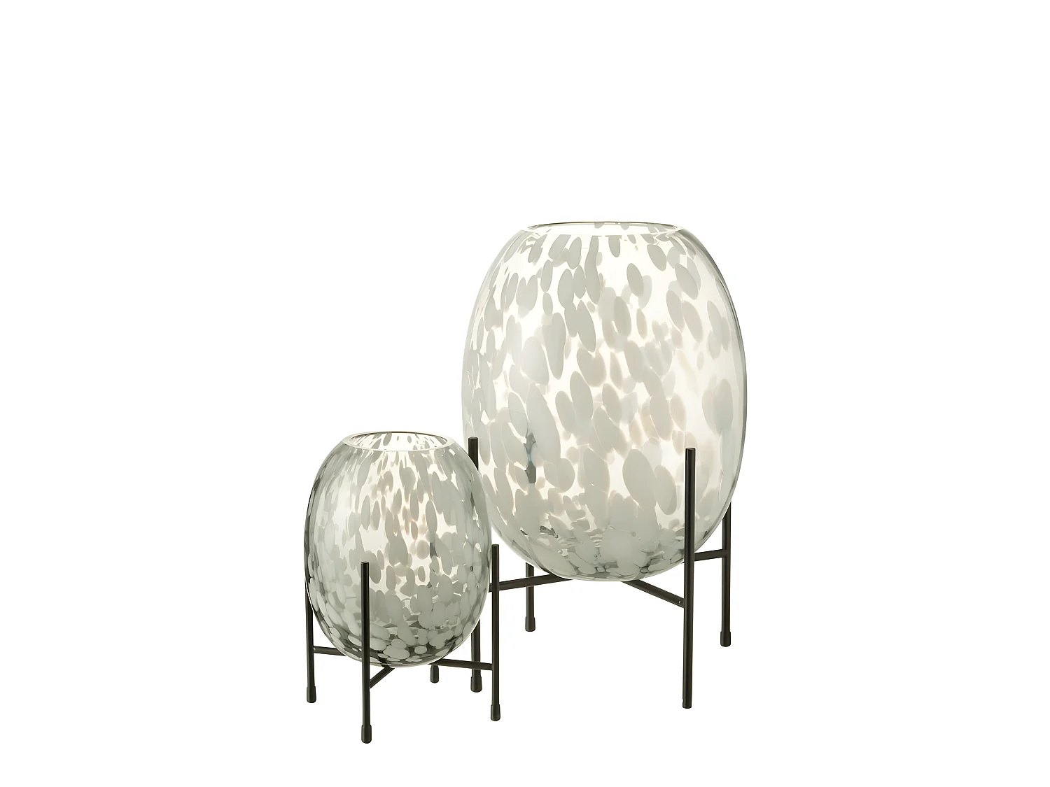Vaso ovale in vetro con base in metallo nero 26x47 cm