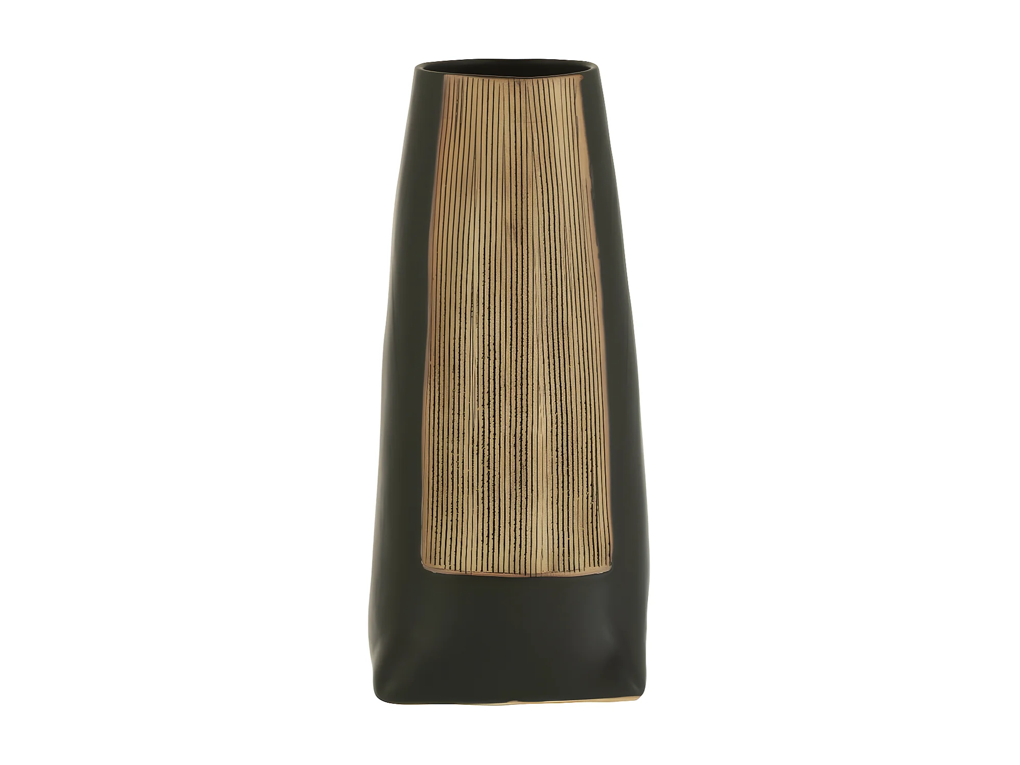 Vaso con collo in ceramica nera e beige 16x16x26cm