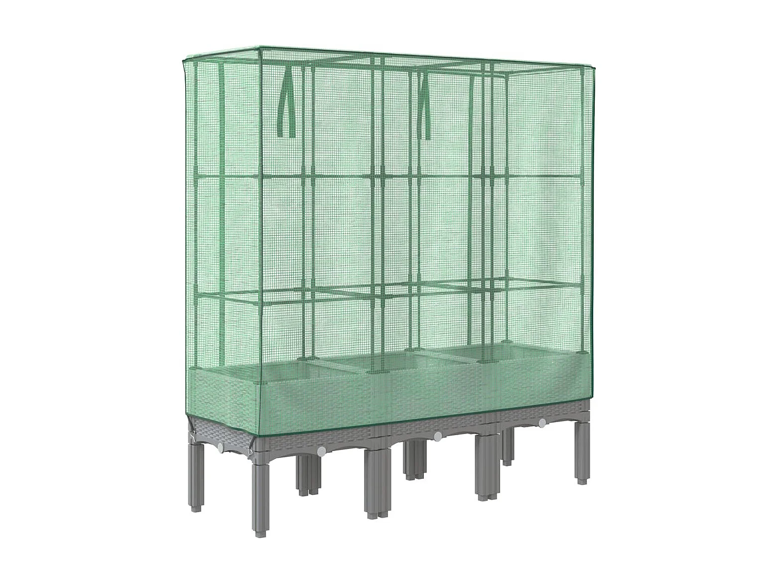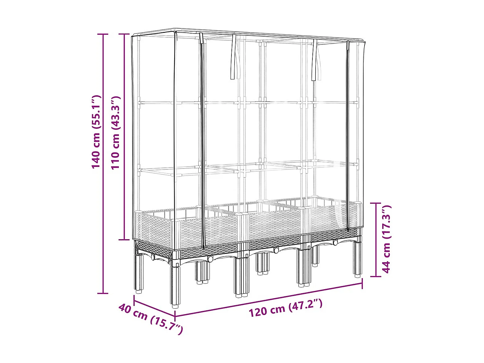 Vaso per fioriera rialzata per piante fiori terrazza da giardino rialzata con rivestimento in simil rattan 120 x 40 x 140 cm grigio chiaro 02_0038744