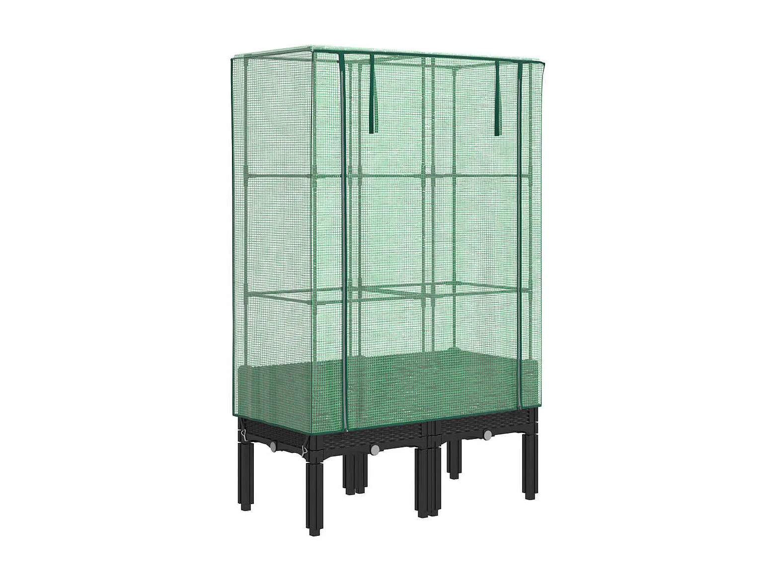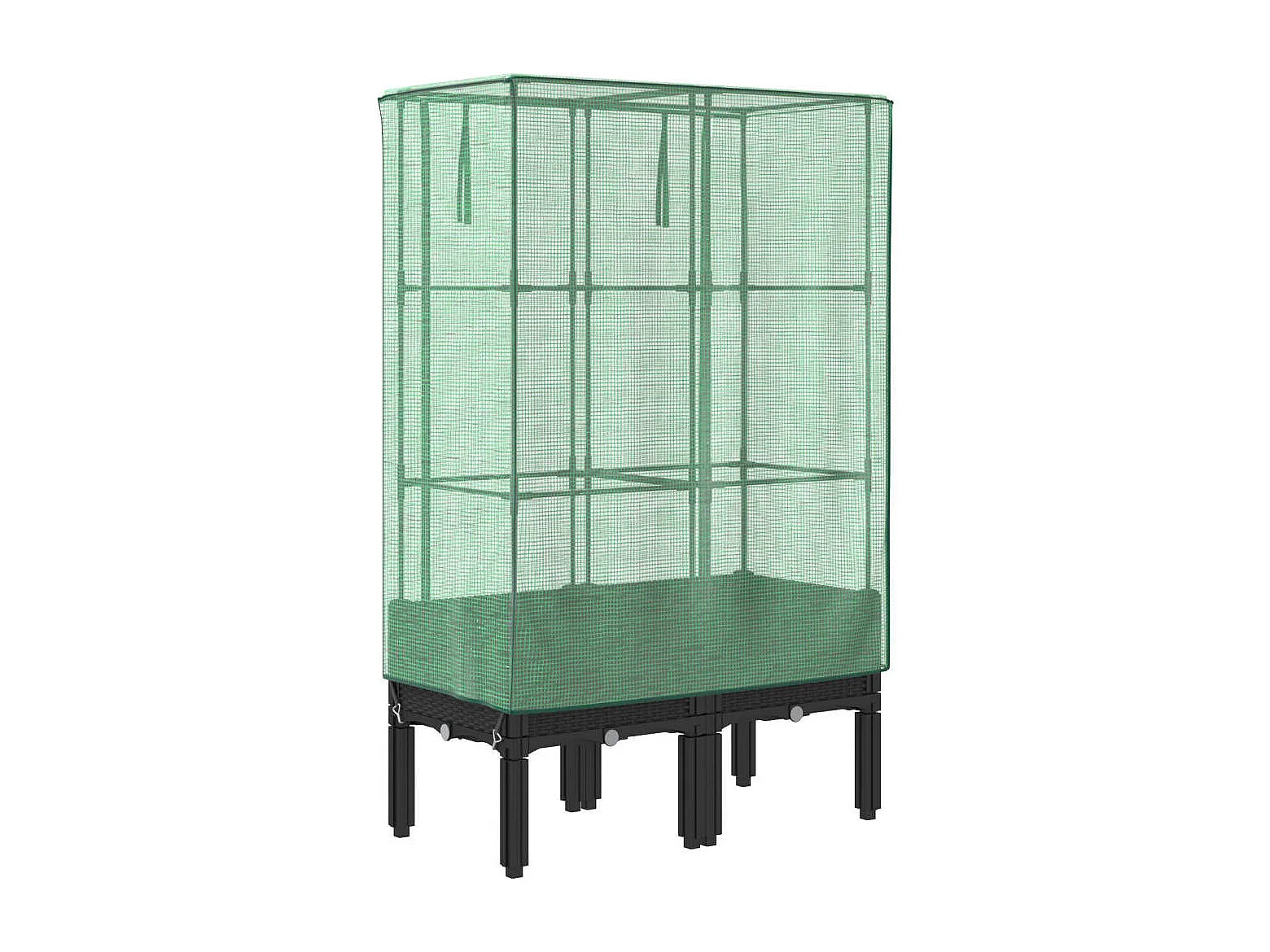 Fioriera aiuola rialzata vassoio piante fiori terrazza giardino con traliccio 80 x 40 x 136 cm PP nero 02_0038308