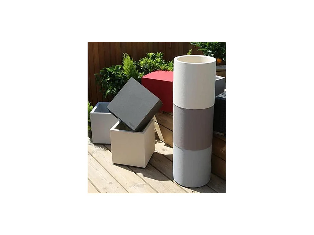 Vaso quadrato in plastica effetto granito 30 cm Grigio