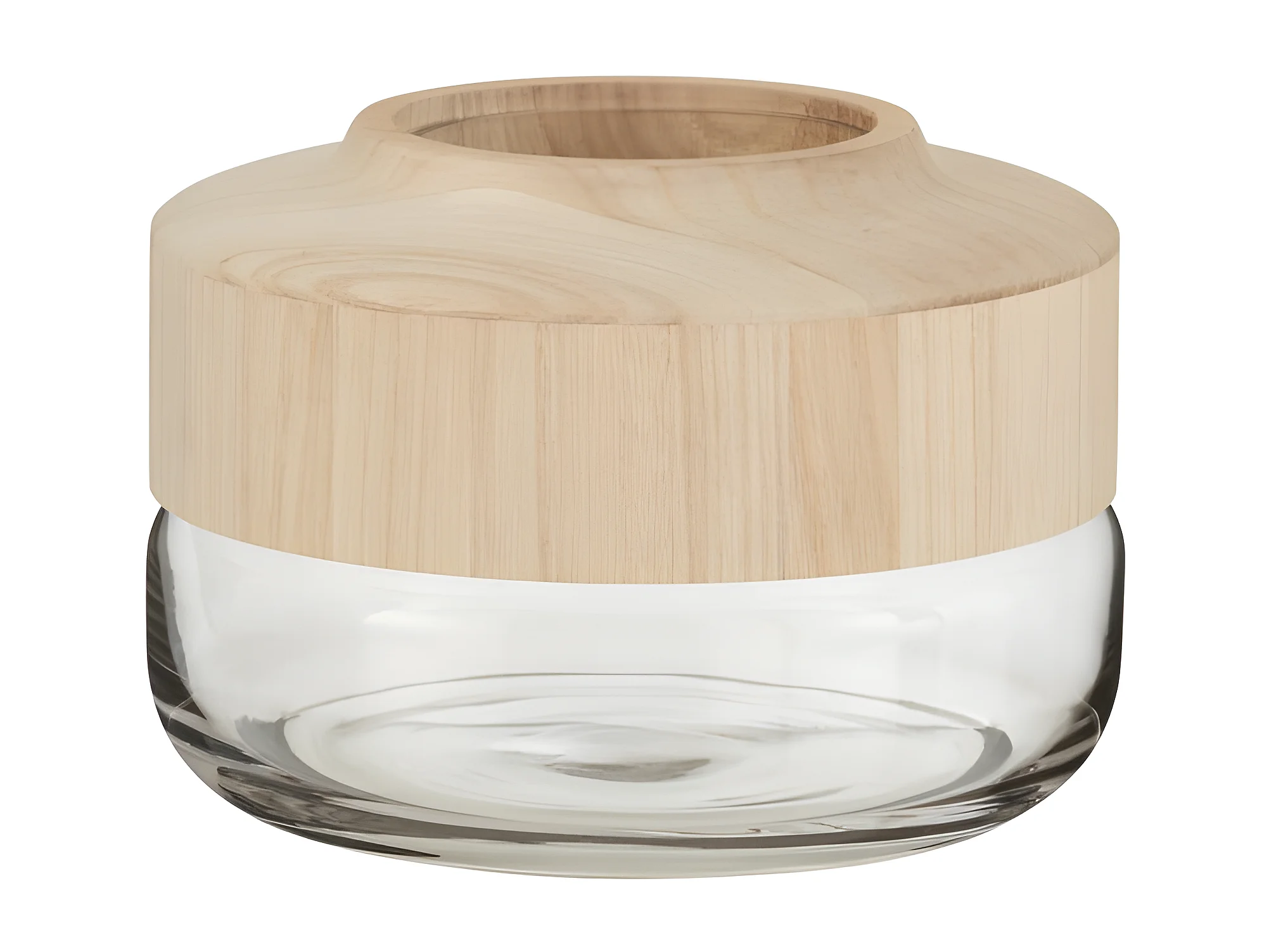 Vaso a sfera con base in legno in vetro naturale 25x25x22. 5 cm