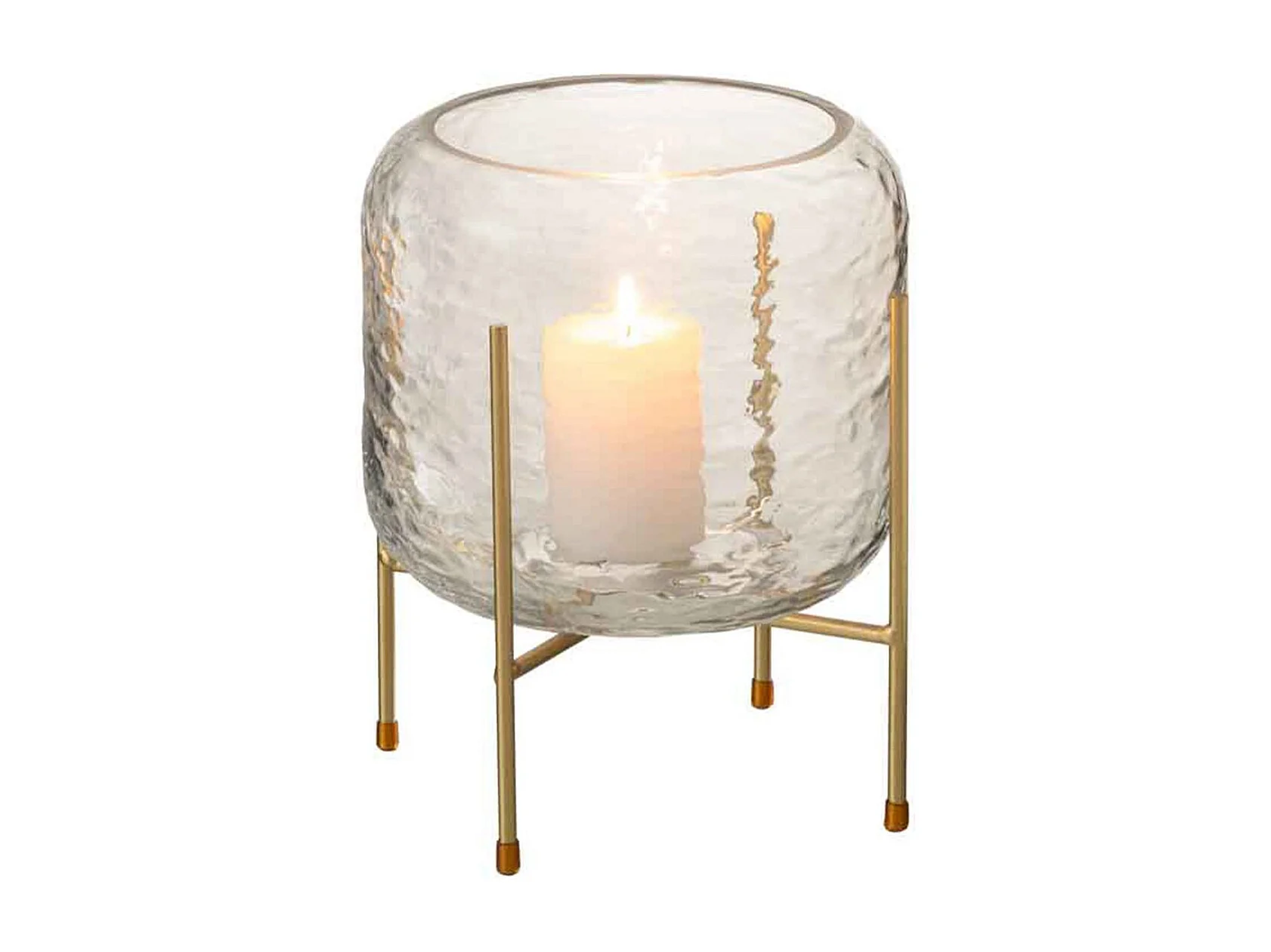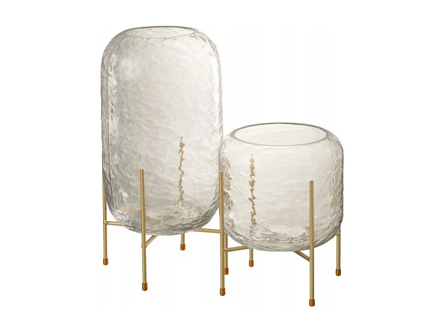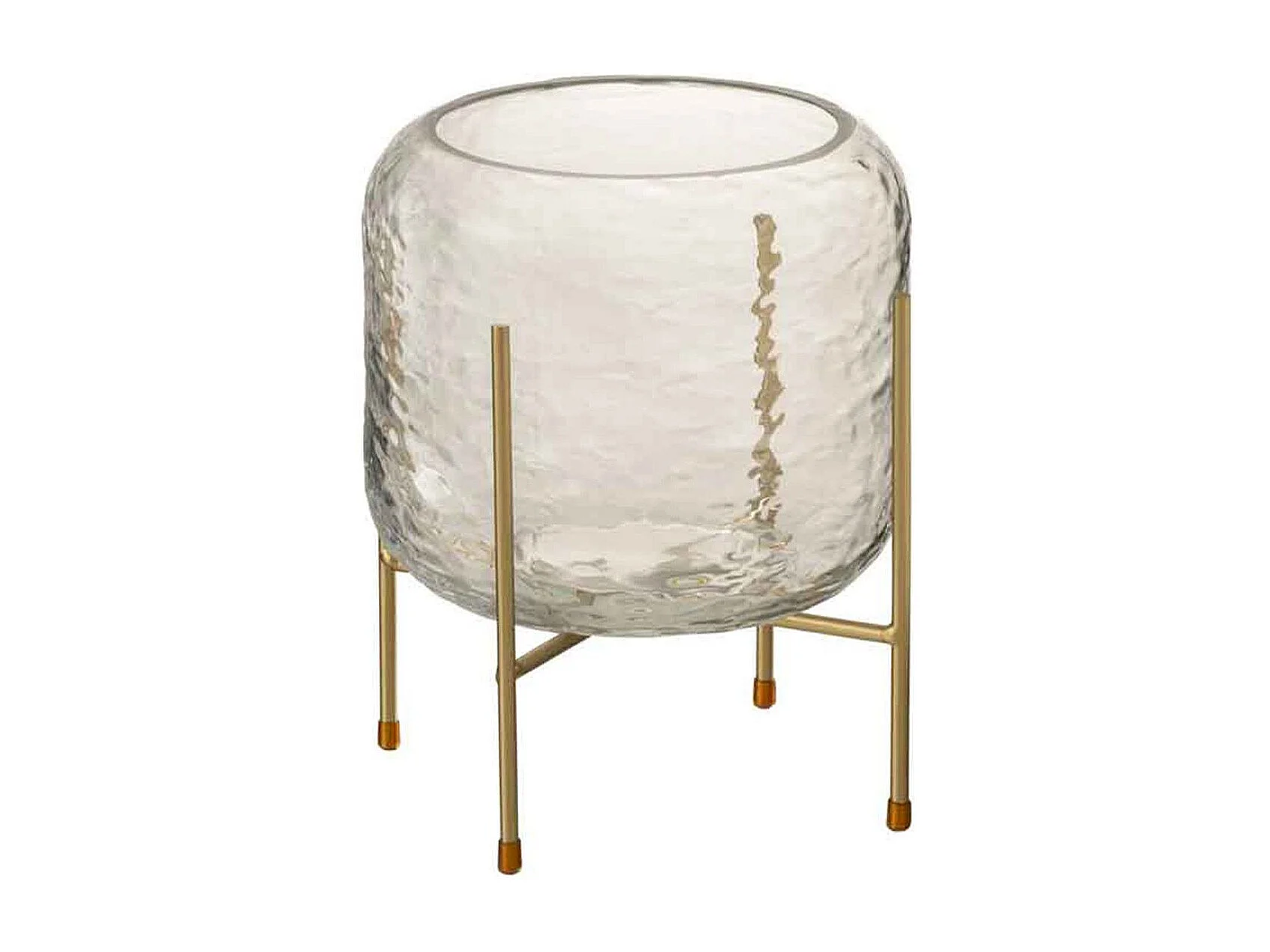 Vaso rotondo in vetro con base in metallo dorato 19x22,5 cm
