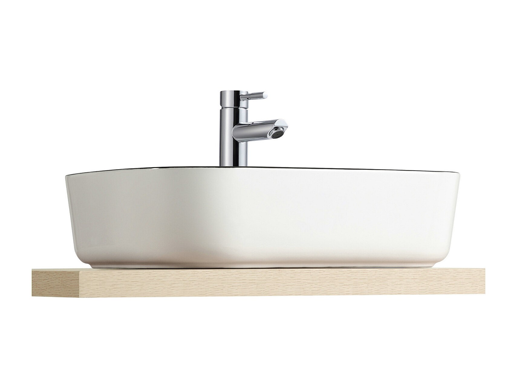 EMKE Lavabo a appoggio in ceramica 61×38×15 cm, lavabo da bagno rettangolare, Lavabo design bianco lucido