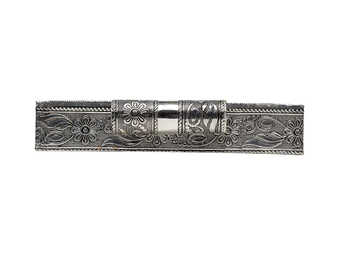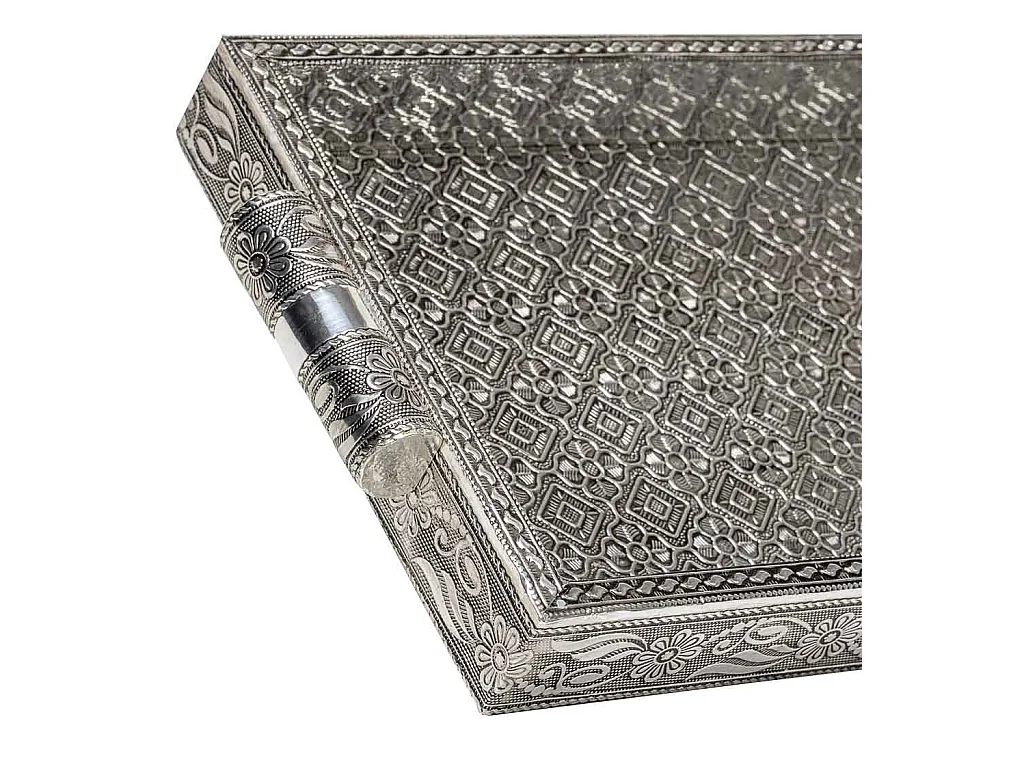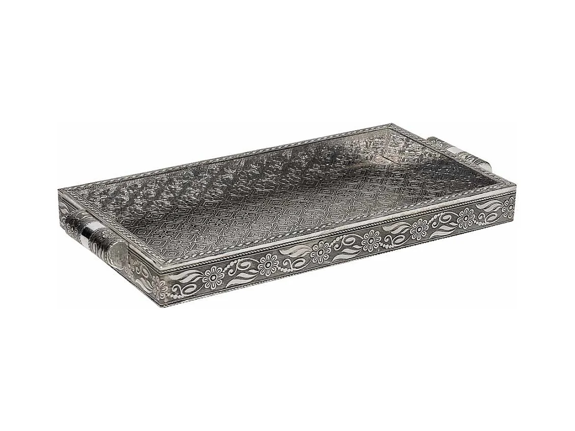 Vassoio in metallo argentato sbalzato 33x18x3h