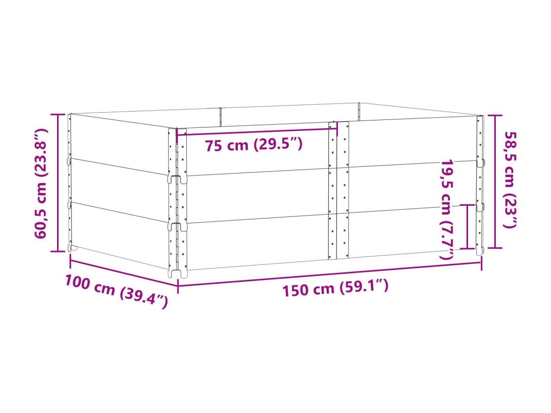 Vassoio per fioriera aiuola rialzata piante fiori terrazza giardino 150 x 100 cm legno massello di pino nero 02_0037424
