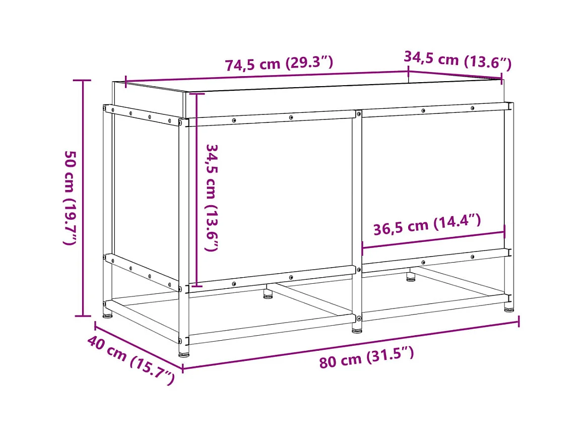 Vassoio per fioriera aiuola rialzata piante fiori terrazza giardino 80 x 40 x 50 cm legno massello di pino bianco 02_0037872