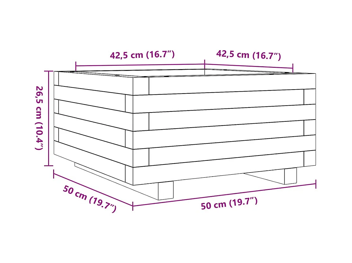 Vassoio per fioriera aiuola rialzata piante fiori terrazza giardino 50 x 50 x 26,5 cm legno di pino impregnato marrone 02_0037631