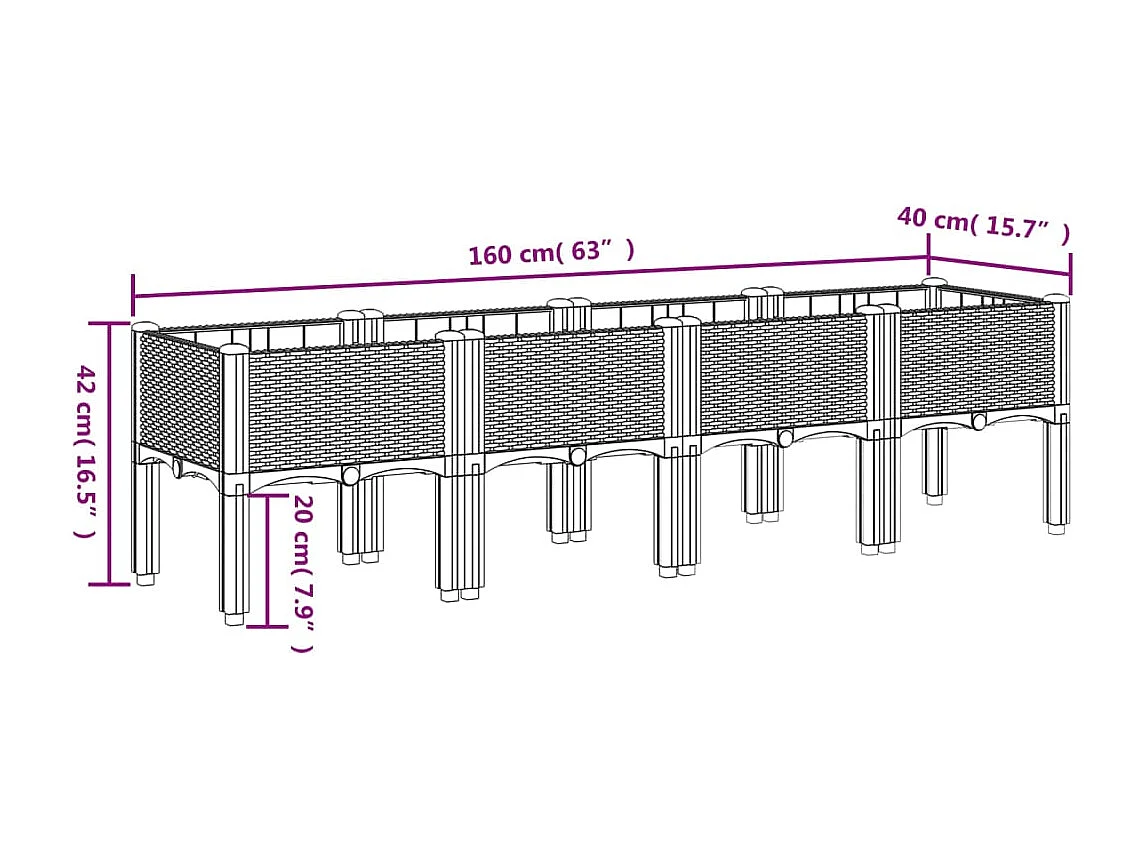 Fioriera rialzata per giardino e terrazza con piedini 160 x 120 x 42 cm PP grigio 02_0038154