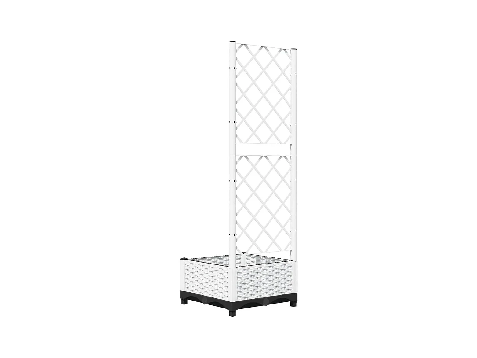 Vassoio per fioriera aiuola rialzata piante fiori terrazza giardino con traliccio 40 x 40 x 121,5 cm PP bianco 02_0038282