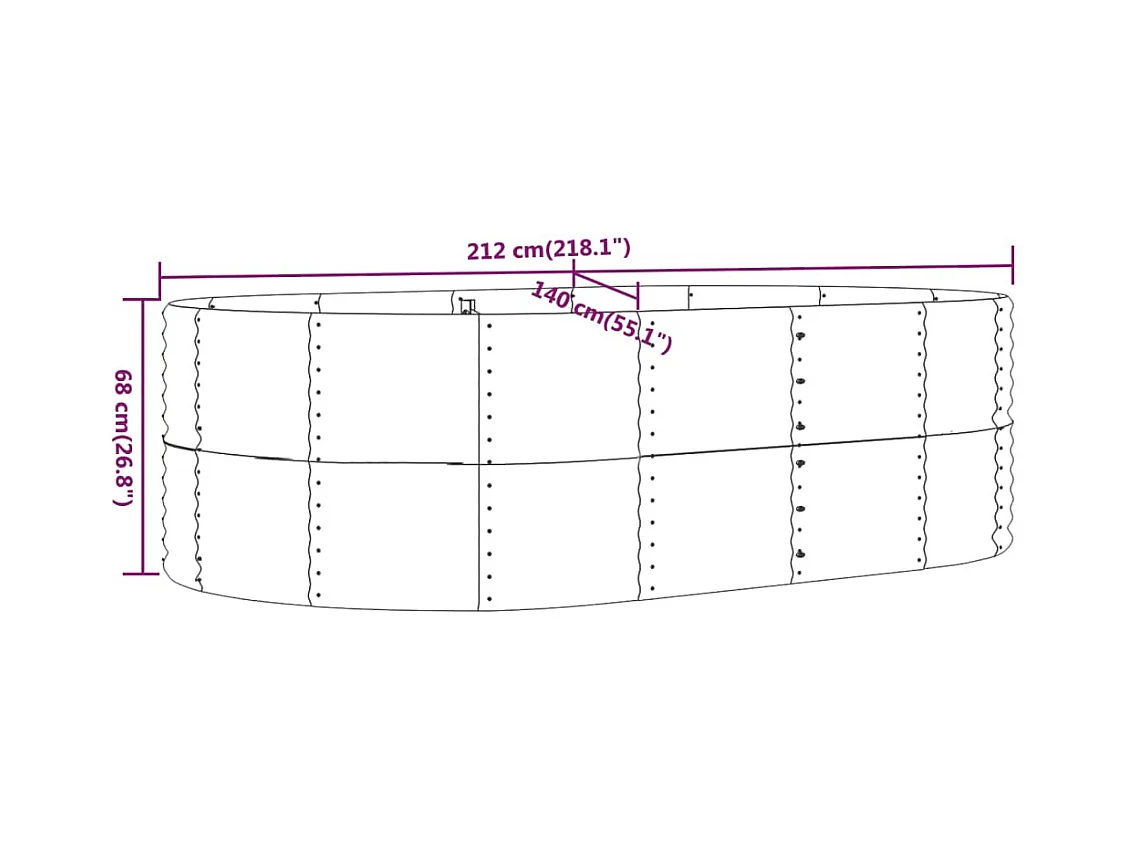 Vassoio per fioriera aiuola rialzata piante fiori terrazza giardino giardino 212 x 140 x 68 cm acciaio verniciato a polvere grigio 02_0039408