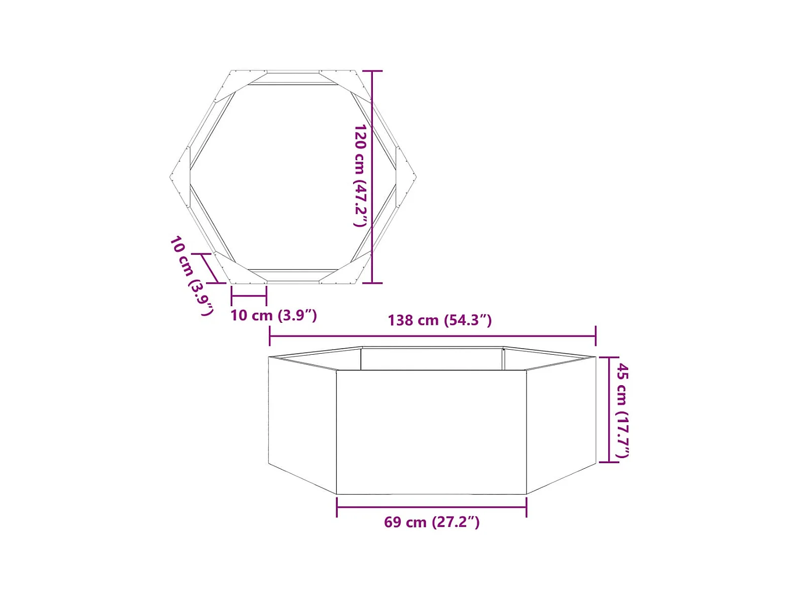 Vassoio per fioriera aiuola rialzata piante fiori terrazzo giardino esagono 138 x 120 x 45 cm acciaio nero 02_0038638