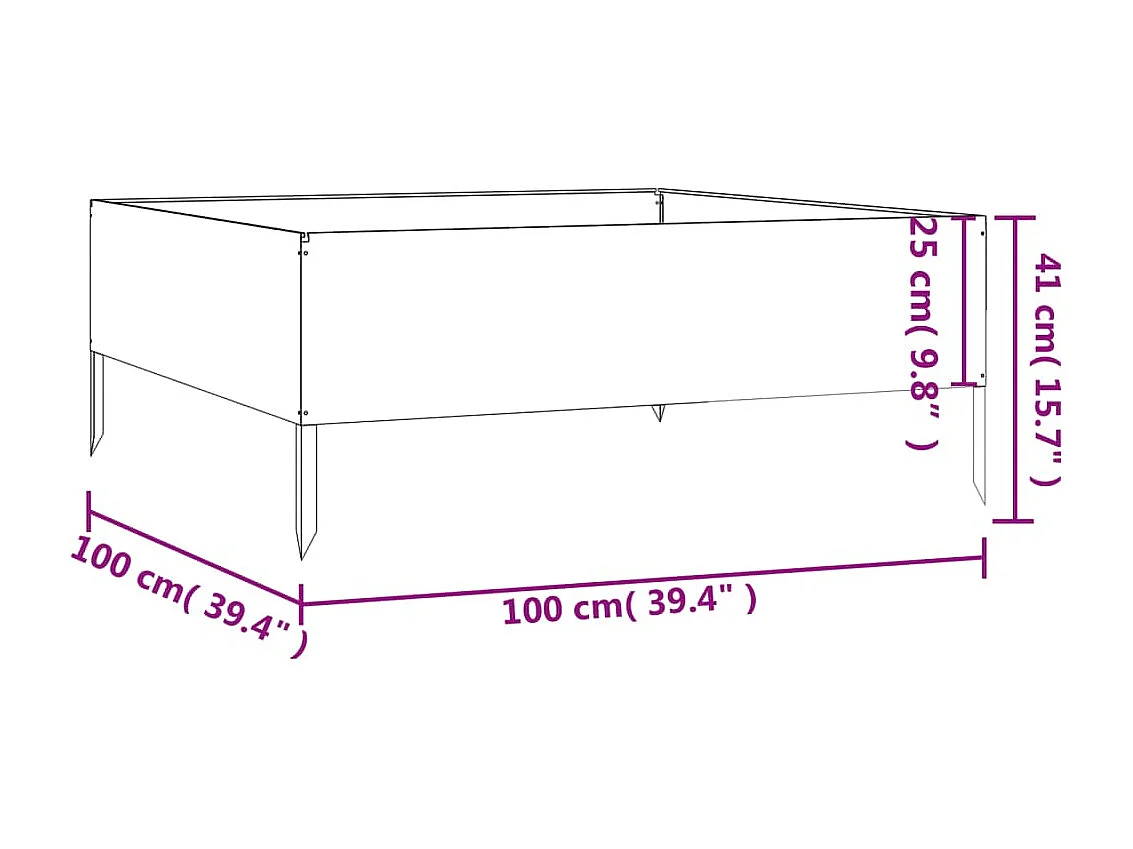 Vassoio per fioriera aiuola rialzata piante fiori terrazza giardino giardino 100 x 100 x 18,5 cm acciaio nero 02_0039257