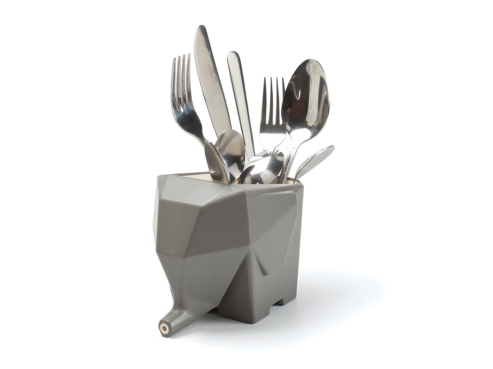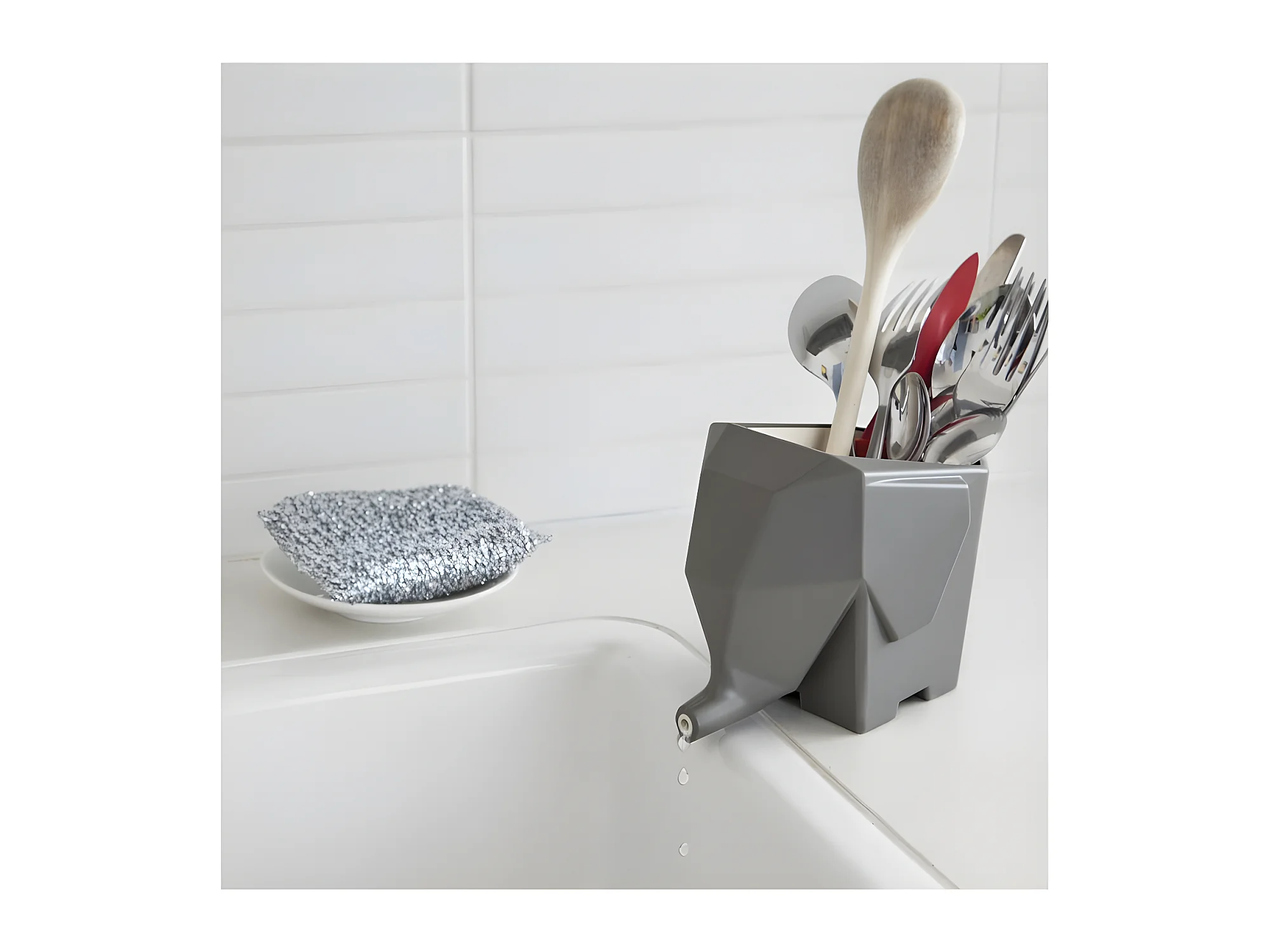 Scolapiatti Angolare Compatto con 4 Scomparti per Posate e Spazio per 11 Piatti in PP Grigio Scuro