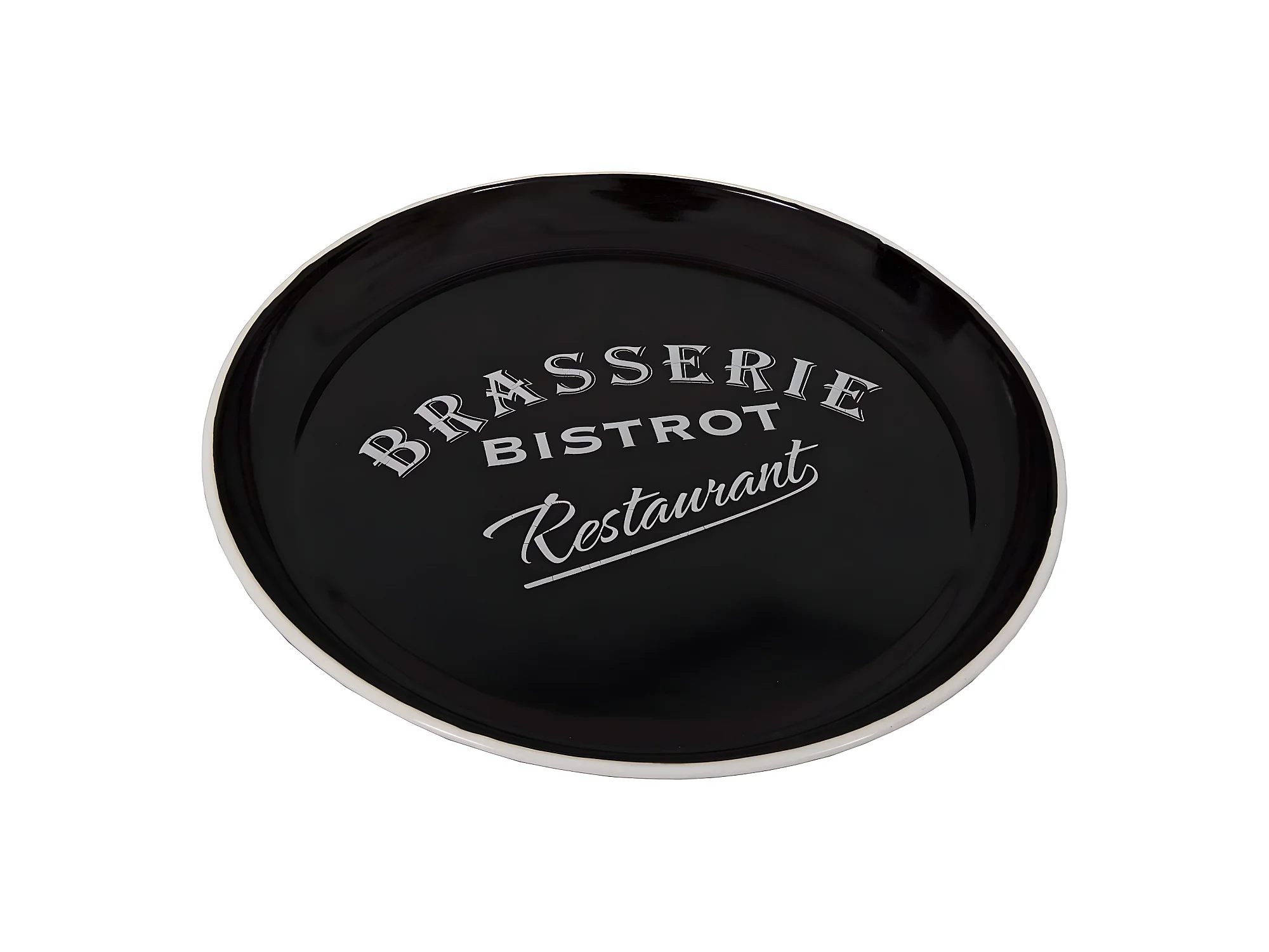 Vassoio rotondo in metallo "Brasserie - Bistrot" Nero