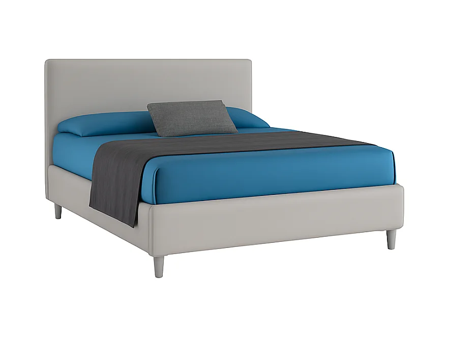 Vela, Letto Matrimoniale Con Contenitore Rivestimento Vegan Leather Easy Clean Grigio Chiaro (175cm X 225cm X 120cm)| Duzzle