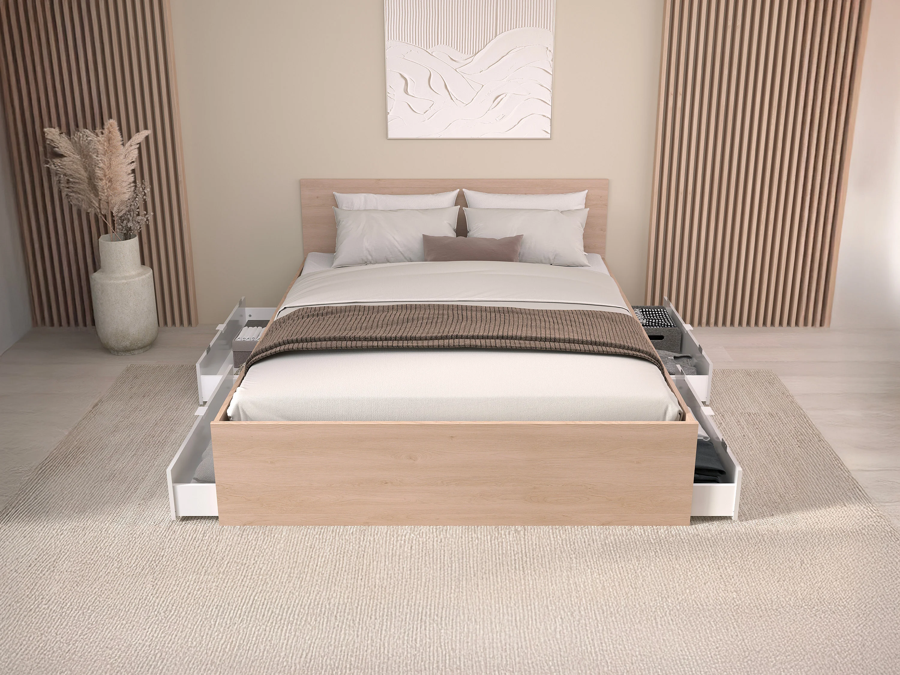 Letto con 4 cassetti 140 x 190 cm Bianco lucido e naturale - VELONA