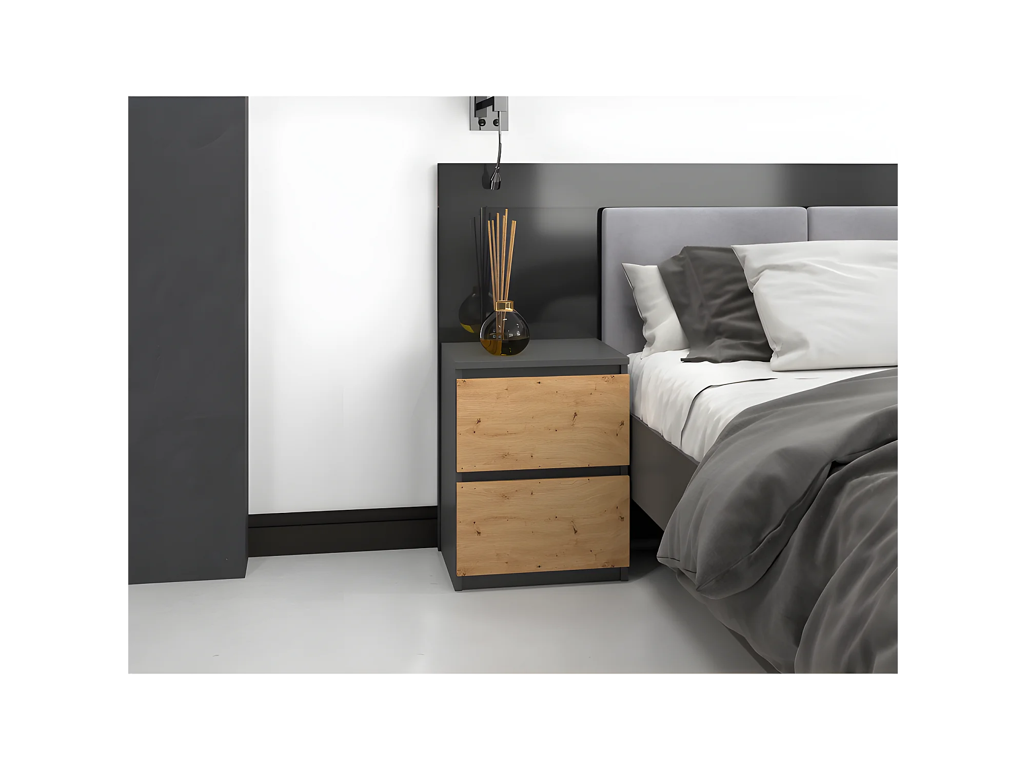 ASTER T1 - Comodino con 2 cassetti - 59x40x32 cm - Comodino - Stile scandinavo