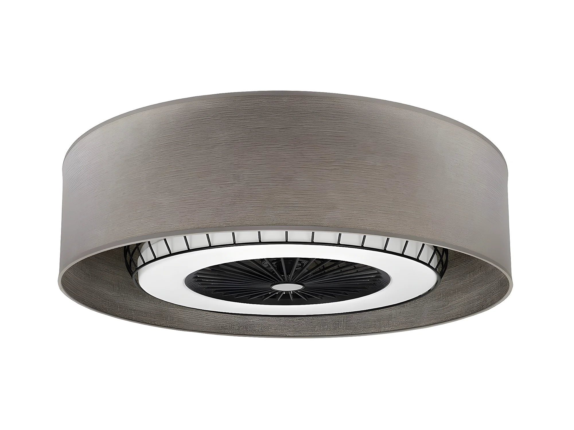 Faresund - Ventilatore e plafoniera LED ø 47 cm con paralume in tessuto, colore grigio