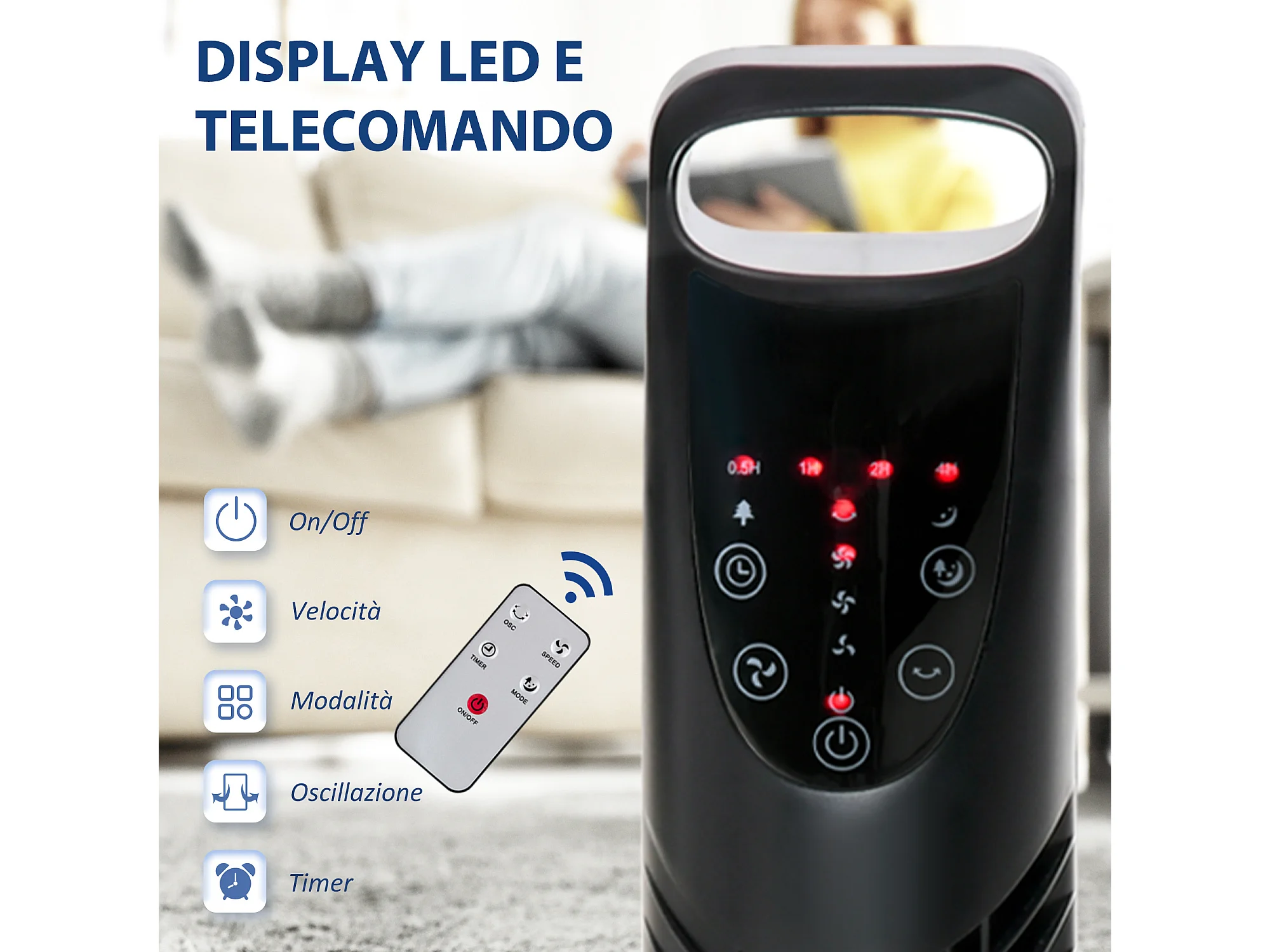 Ventilatore a colonna con telecomando fino a 5m oscillante 70° con 3 modalità e 3 velocità