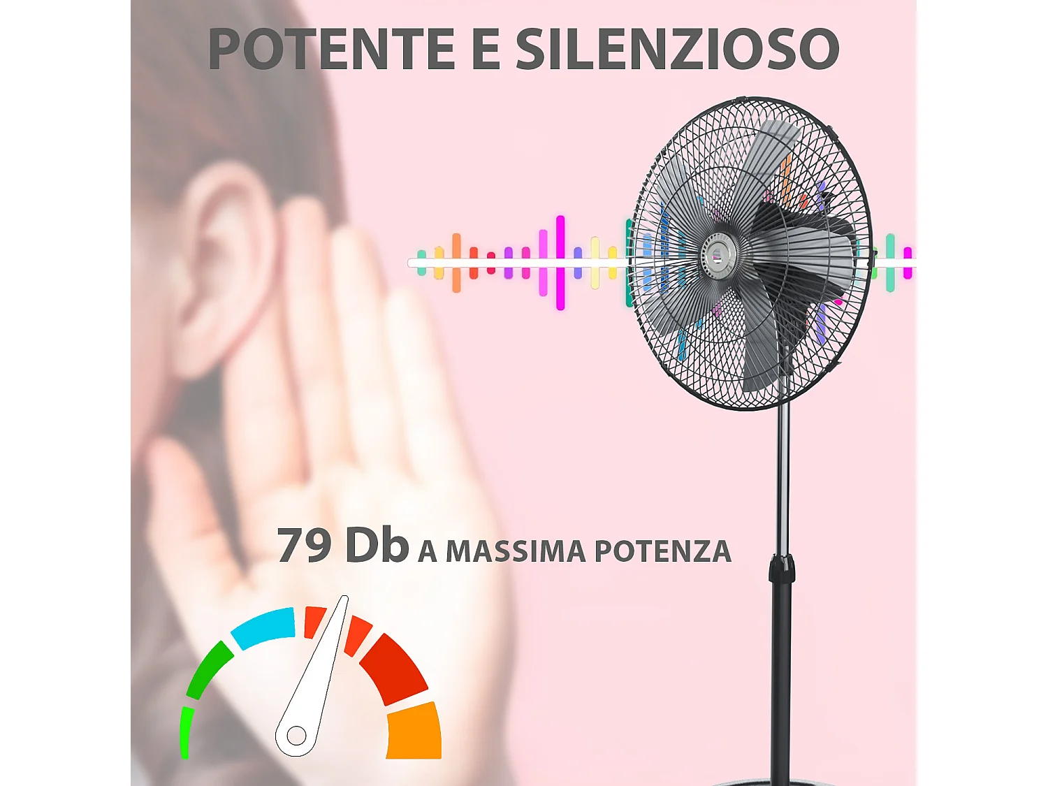 Ventilatore A Piantana Potente Da 70W Per Pavimento 5 Pale In Acciaio Da 42 Cm Silenzioso 3 Velocità Oscillante Altezza Regolabili Griglia Di Protezione Colore Nero