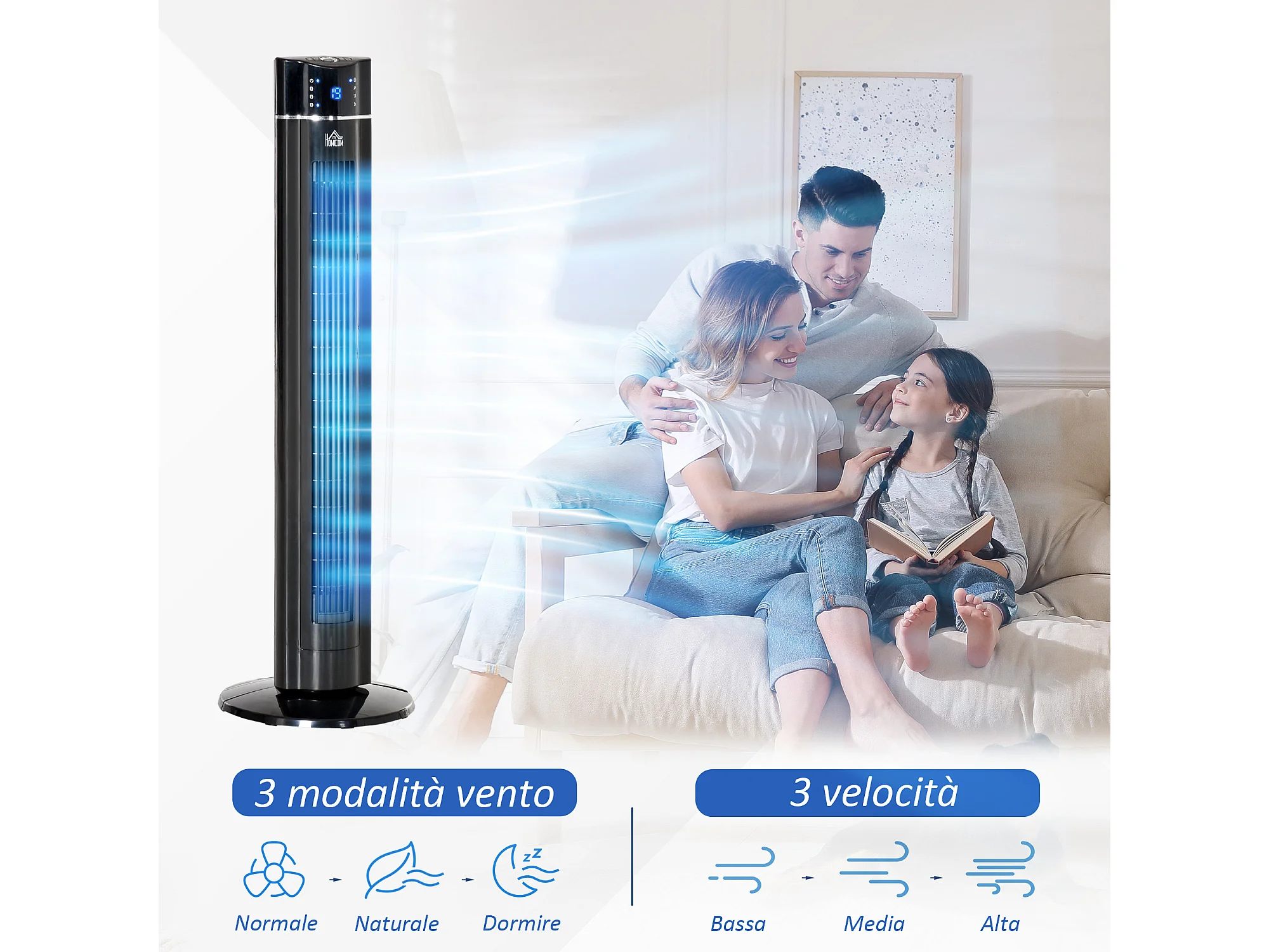 Ventilatore a torre ionizzatore 60w con 3 velocità