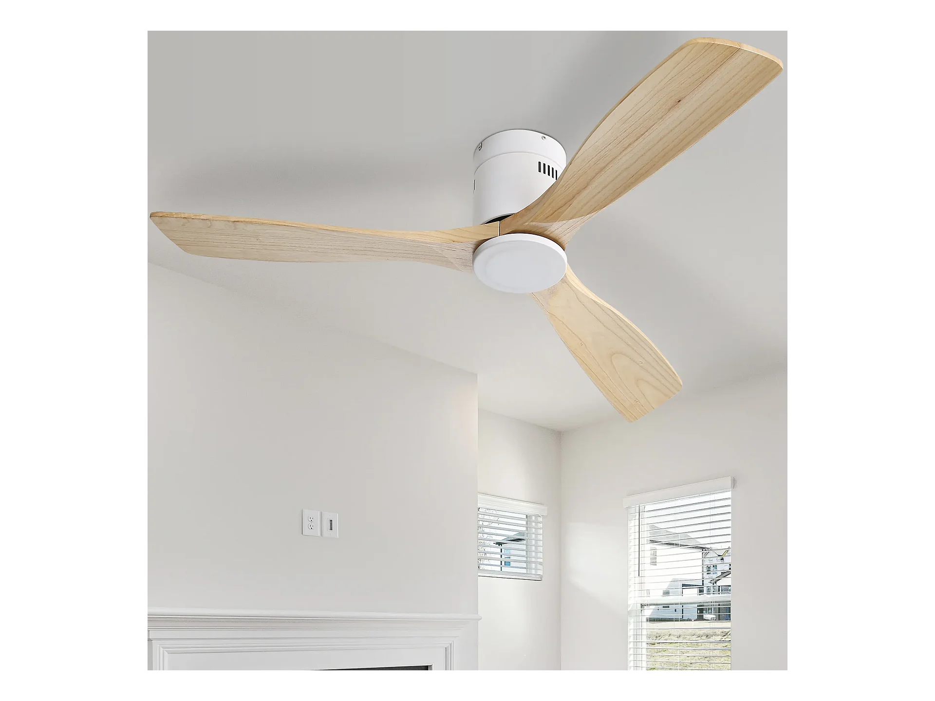 Ventilatore da soffitto per soggiorno - con luce LED dimmerabile e telecomando a 6 velocità - 3 pale in legno