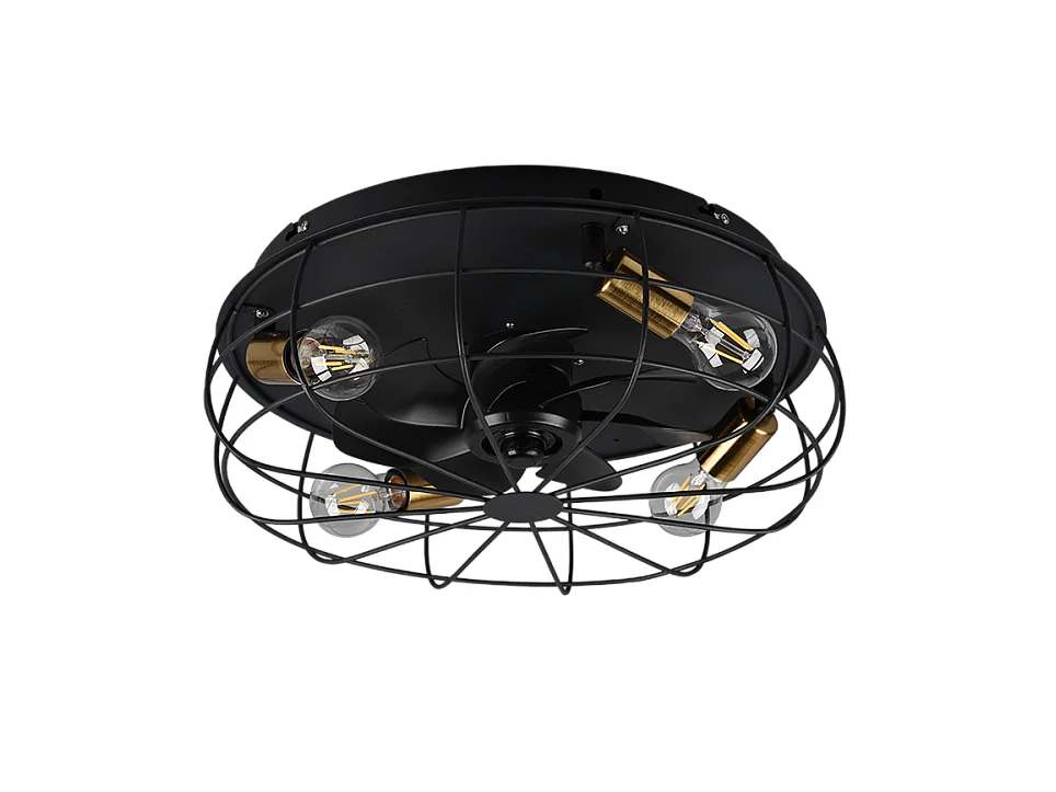 Ventilatore/Plafoniera 4 luci, metallo, nero opaco, 48,5x17,5x48,5 cm, Trondheim