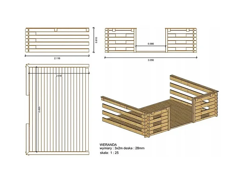 Veranda - 6.00 m2 - 3.00m x 2.00m - colore: naturale - DOM142 - ALTANKA