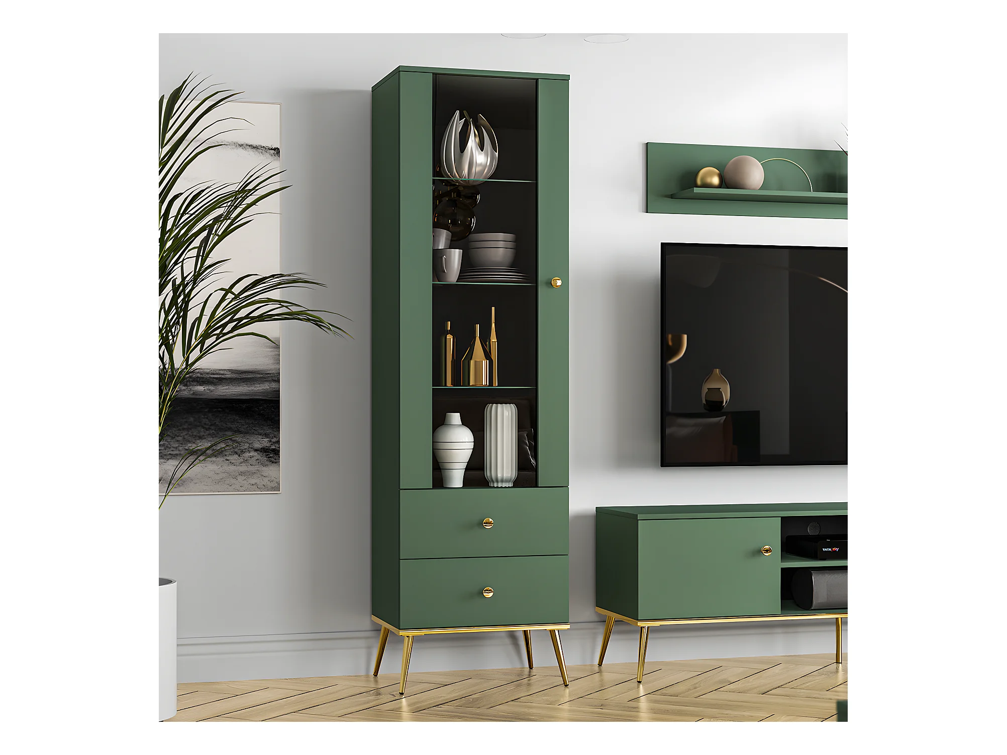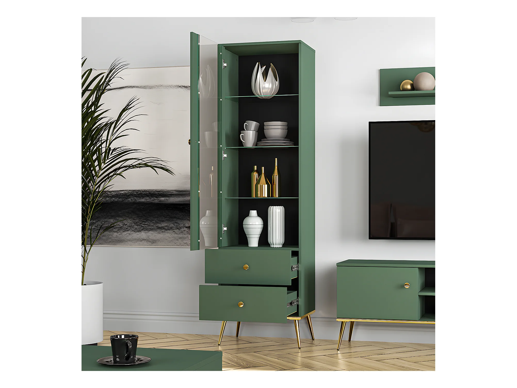 Vetrina a 1 anta e 2 cassetti Thalia Green