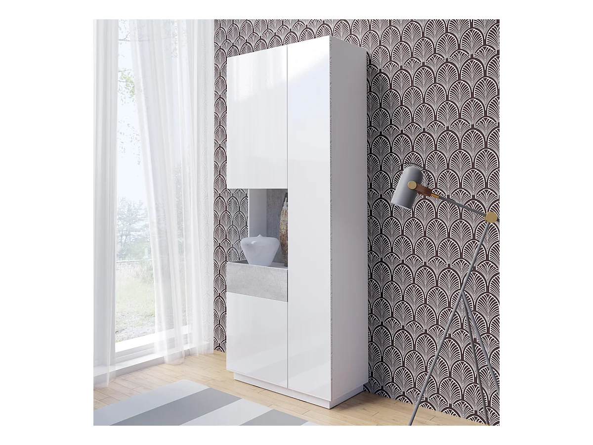 Vetrina 2 ante Andrea bianco e cemento 207cm