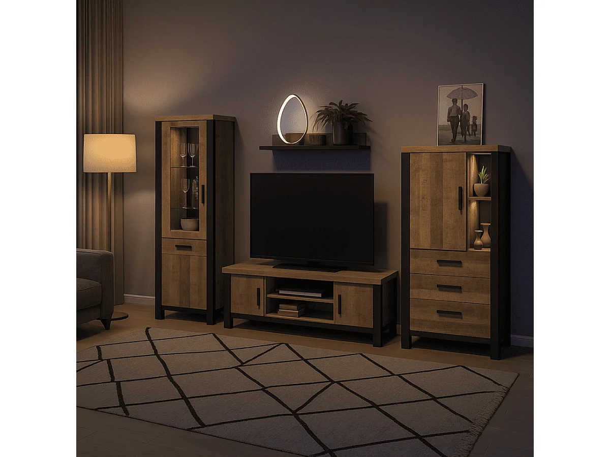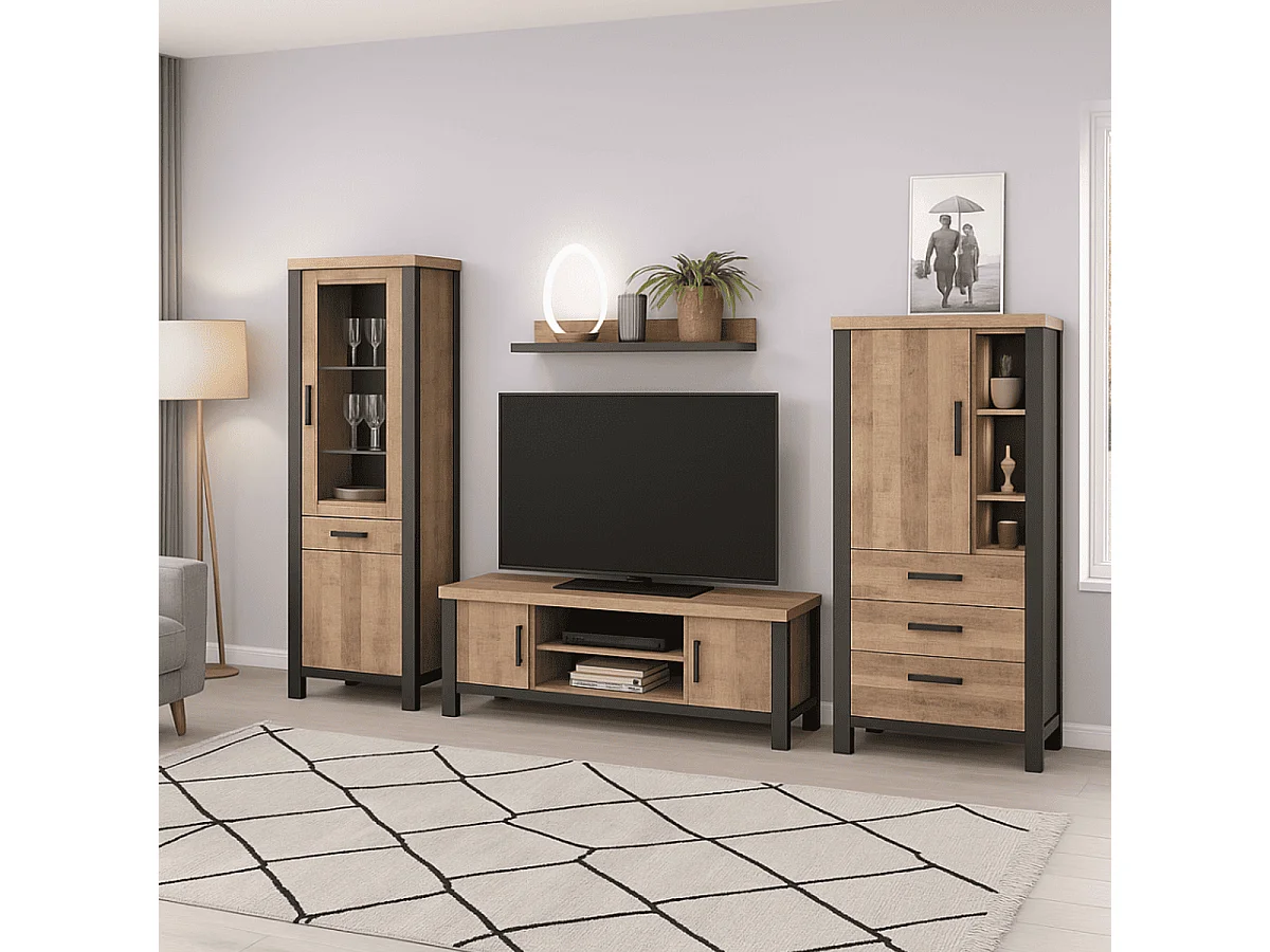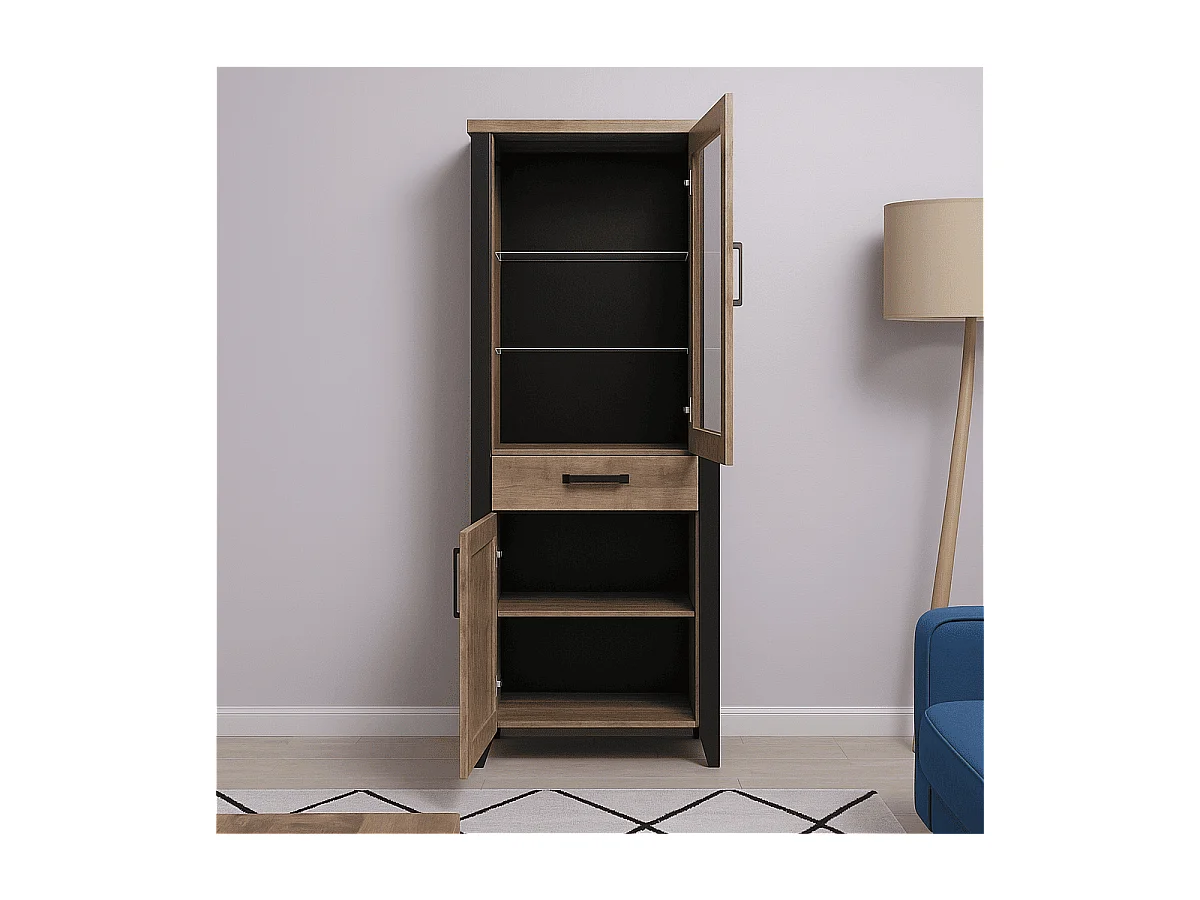 Vetrina 2 ante, di cui 1 con vetro temperato e 1 cassetto L70 cm - EMILE