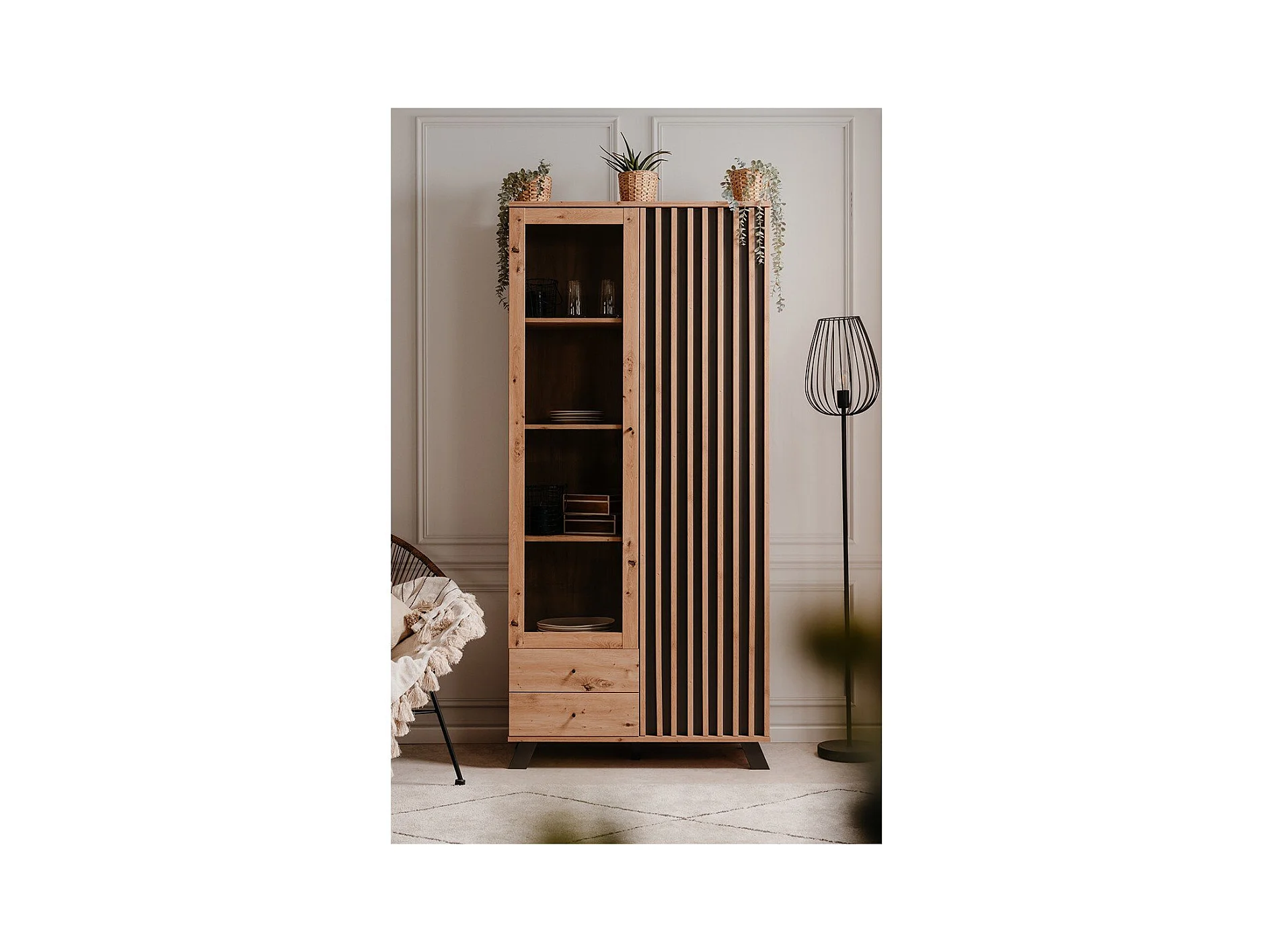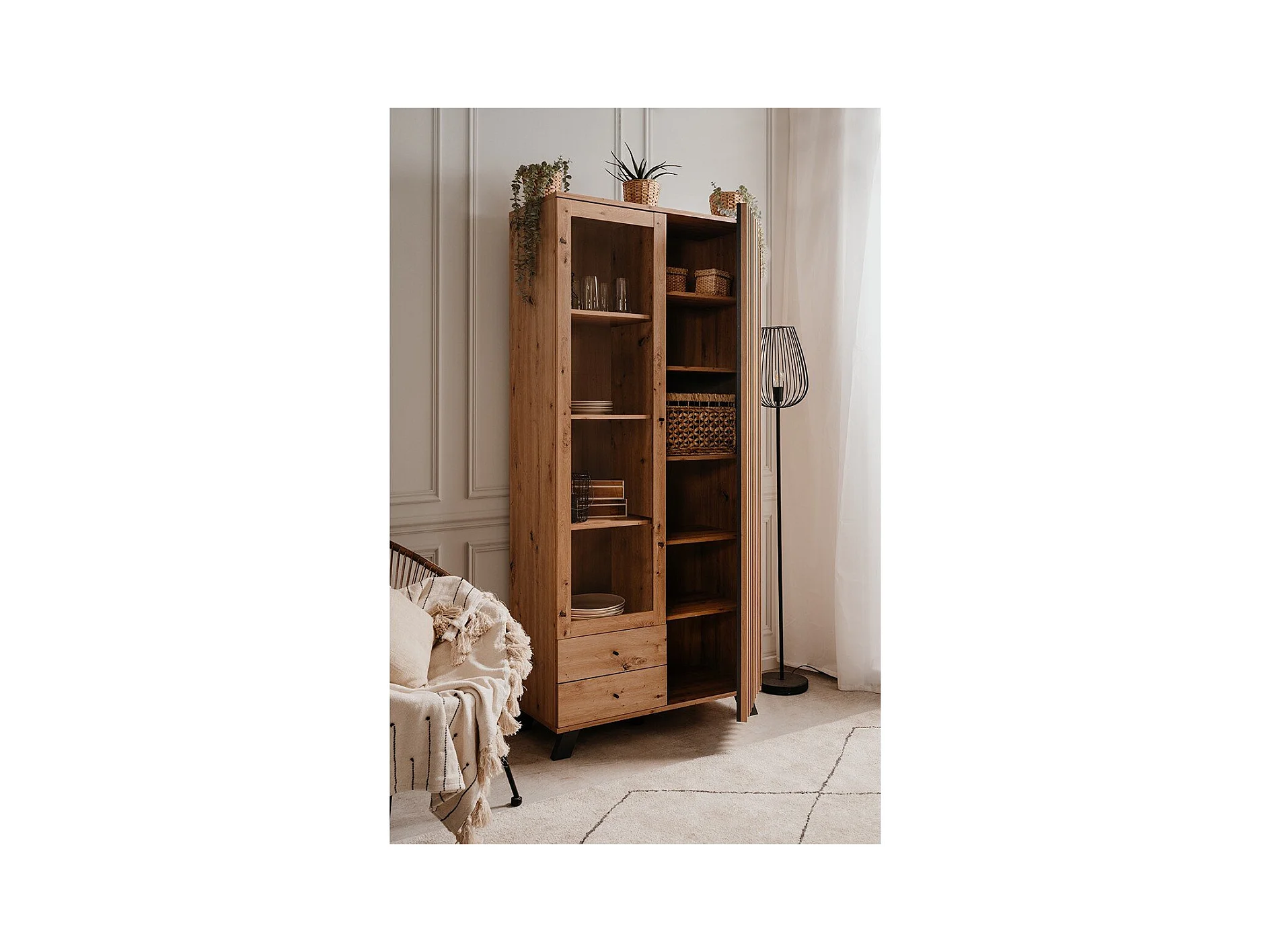 Vetrina 2 ante e 2 cassetti, rovere artigianale L92 cm - Lublino